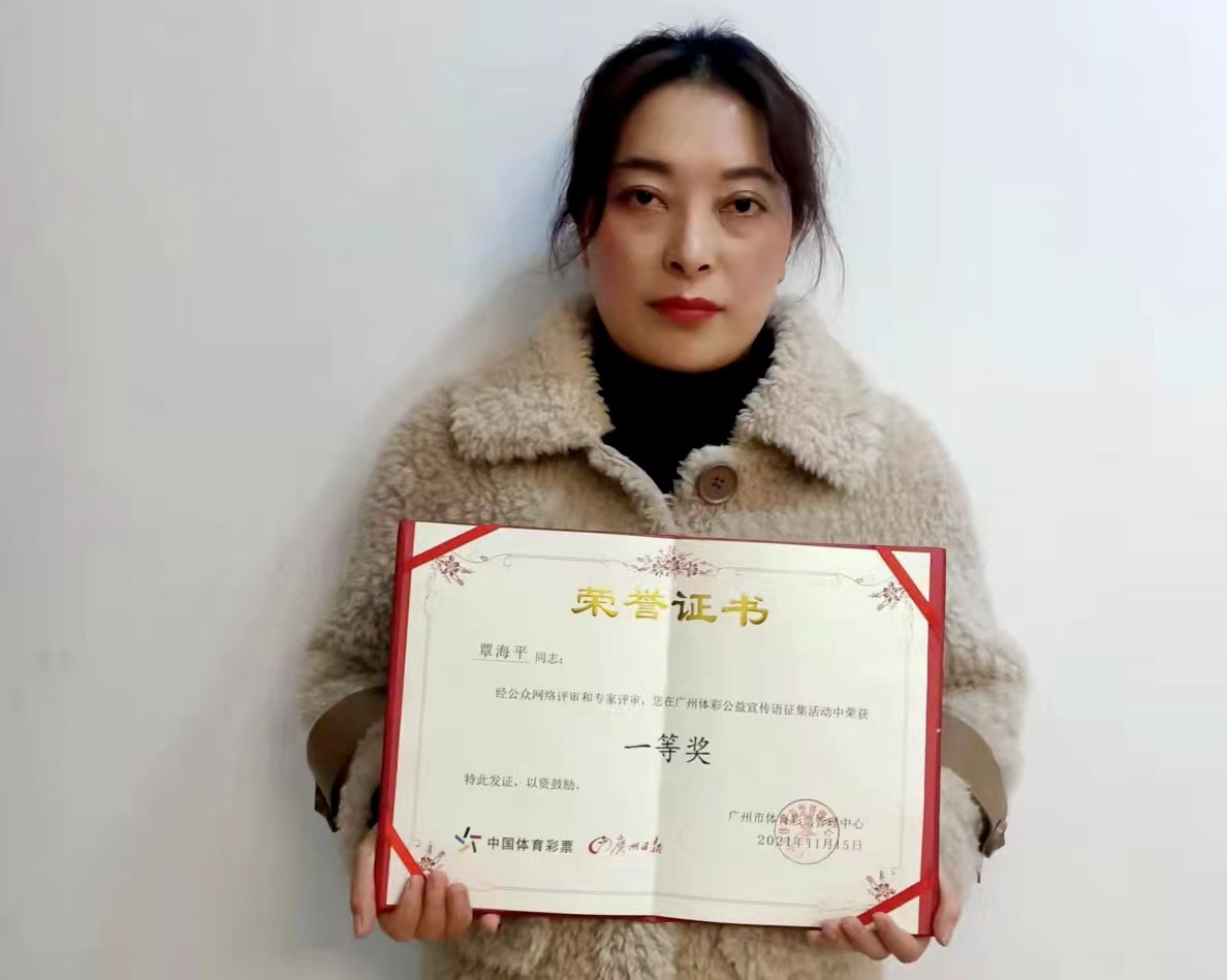 覃海平经营着一家童装店,她说自己很喜欢文字创作,平日就非常热衷参与网上各种广告语征集活动,已经数不清参加过多少回了,这次一看到广州体彩的活动就果断参与。