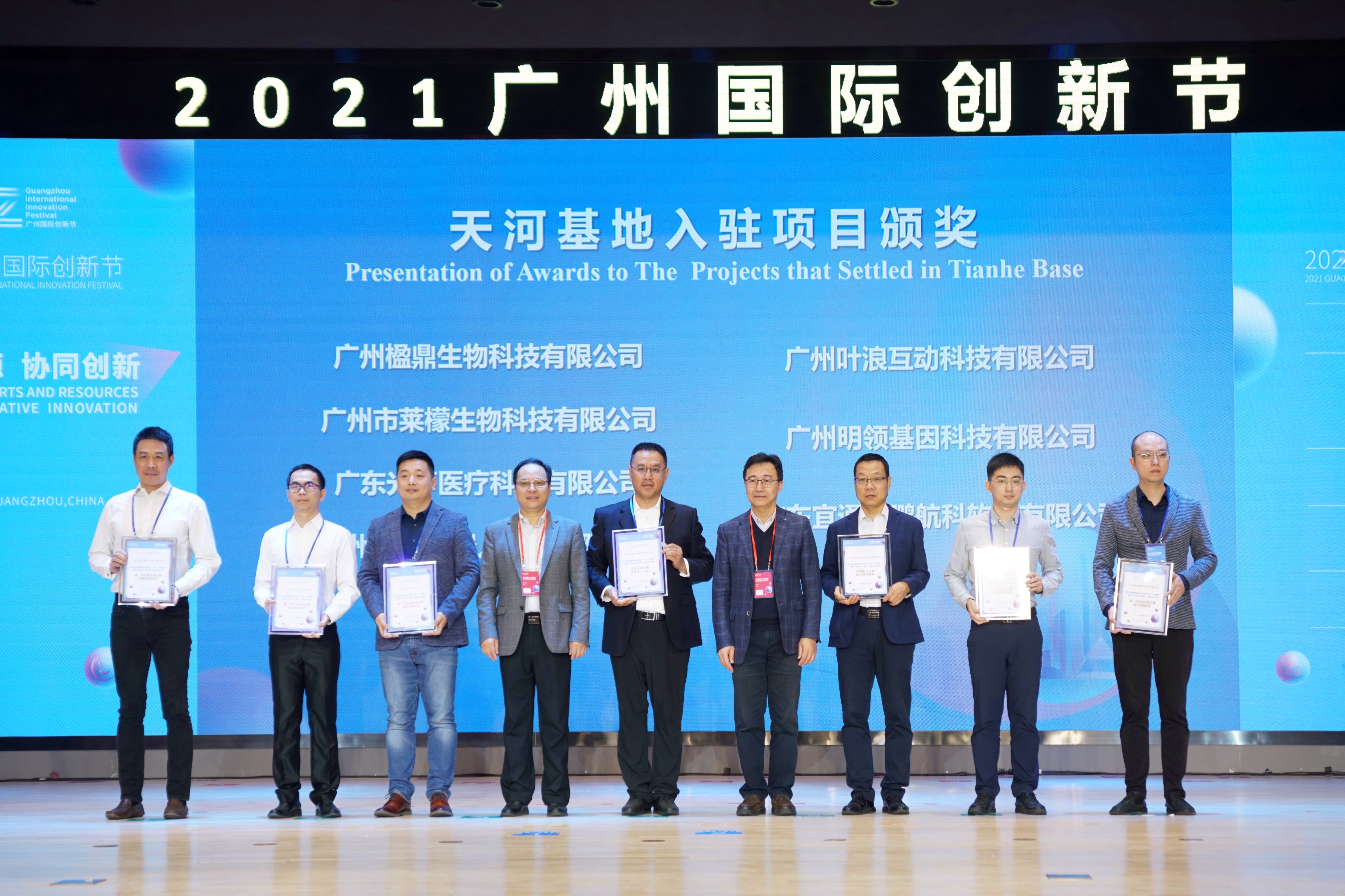 广州(国际)科技成果转化天河基地是在广州市科技局指导下,由天河区政府主导,华南理工大学、暨南大学、华南师范大学、华南农业大学、中科院广州能源所和广东省农业科学院六家单位发起,重点打造的一个大湾区创新链、产业链、资金链、政策链、服务链融合发展的平台,目前已有15个优质项目入驻基地,其中有7个项目在第十届中国创新创业大赛(广东·广州赛区)暨第六届羊城“科创杯”创新创业大赛中荣获佳绩。开幕式上,为广州楹鼎生物科技有限公司、广州市莱檬生物科技有限公司、广东光声医疗科技有限公司、广州知行机器人科技有限公司、广州叶浪互动科技有限公司、广州明领基因科技有限公司、广东宜通伟鹏航科软件有限公司进行授牌。