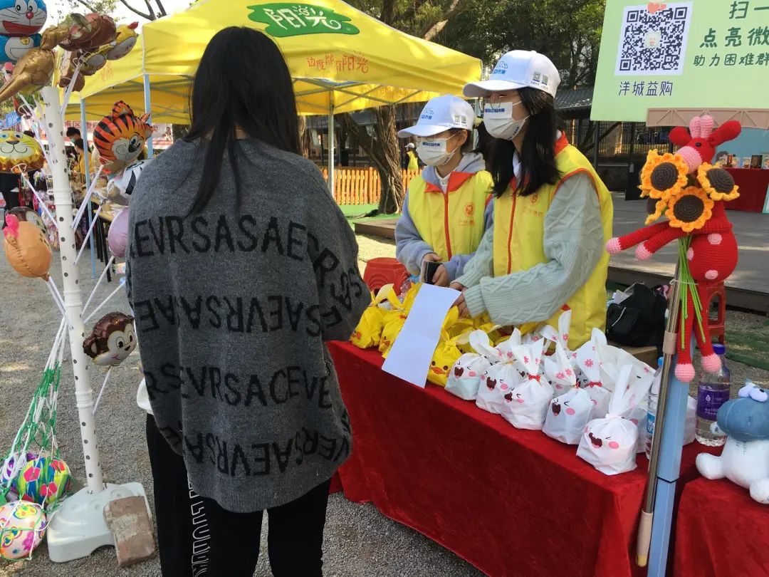 市集现场设有妇女创业体验摊位,为辖区6名困境妇女搭设义卖专区,帮助妇女们树立创业自信心,增加家庭经济收入。“慢岛公益市集为我们搭建了一个好的平台,让我们在获取收入的同时,还能献一点爱心。”参加活动的残障人士阿丽告诉小e,自己多年来行动不便,需要依靠轮椅出行。阿丽日常出售手工制品获取生活来源,参与此次活动,她售卖自制的糖水和发卡。