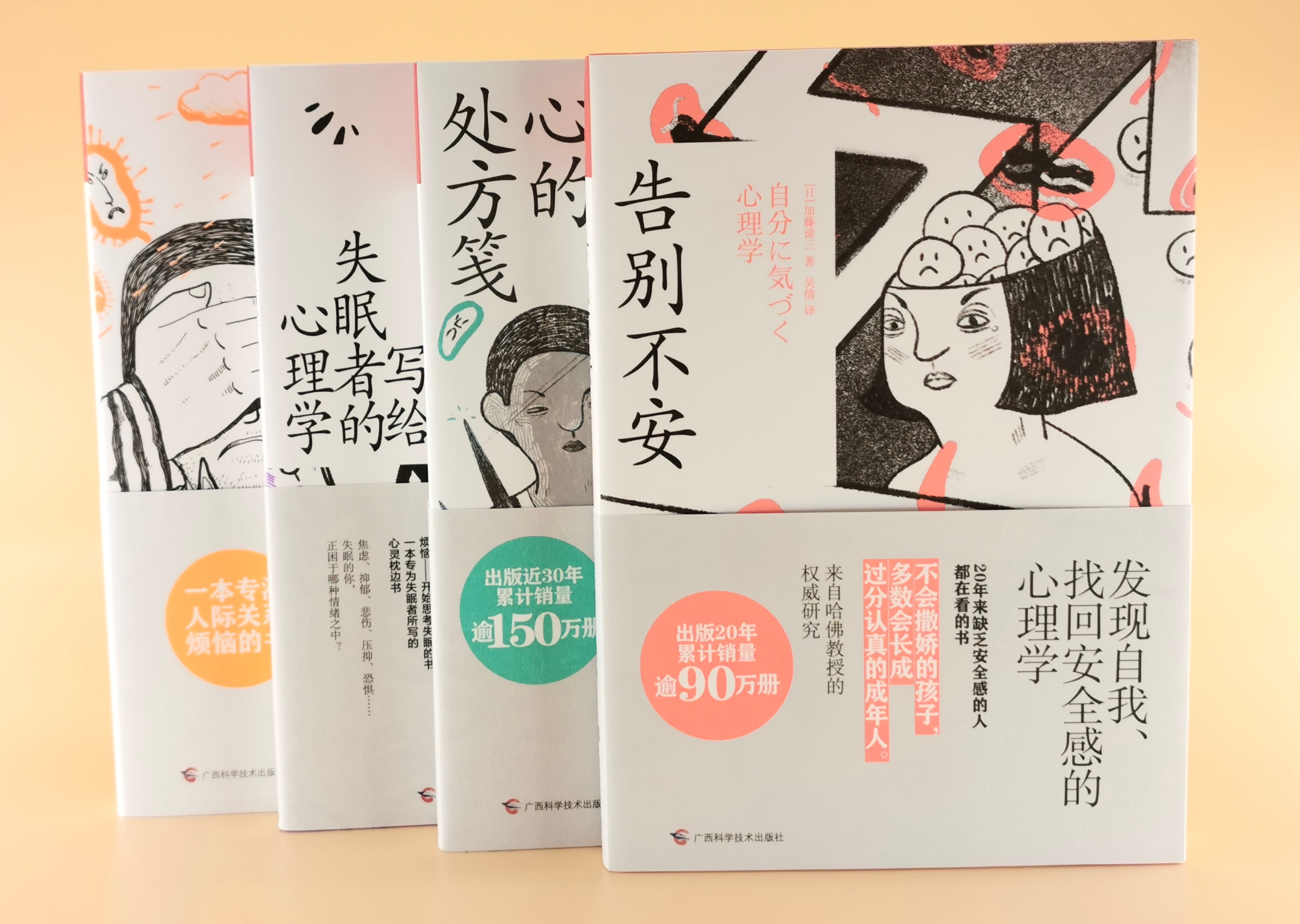《生活智慧书系》是广西科学技术出版社“蜻蜓心理”品牌推出的心理学系列读物,该系列精选日本心理学大师的经典作品,聚焦于人们生活中的烦恼和情绪,每本书围绕一个主题,由心理学大师给出睿智、科学的分析和解答,引导读者给心灵松绑,消除烦恼,享受自由自在的生活。在包装设计上,该系列书诚请国内优秀插画师,结合图书主题,绘制风格统一的封面插图,让每一张图中都能感受到与主题对应的情绪或状态,再由资深设计师统一进行封面制作。已出版过《告别不安》《心的处方笺》《写给失眠者的心理学》。