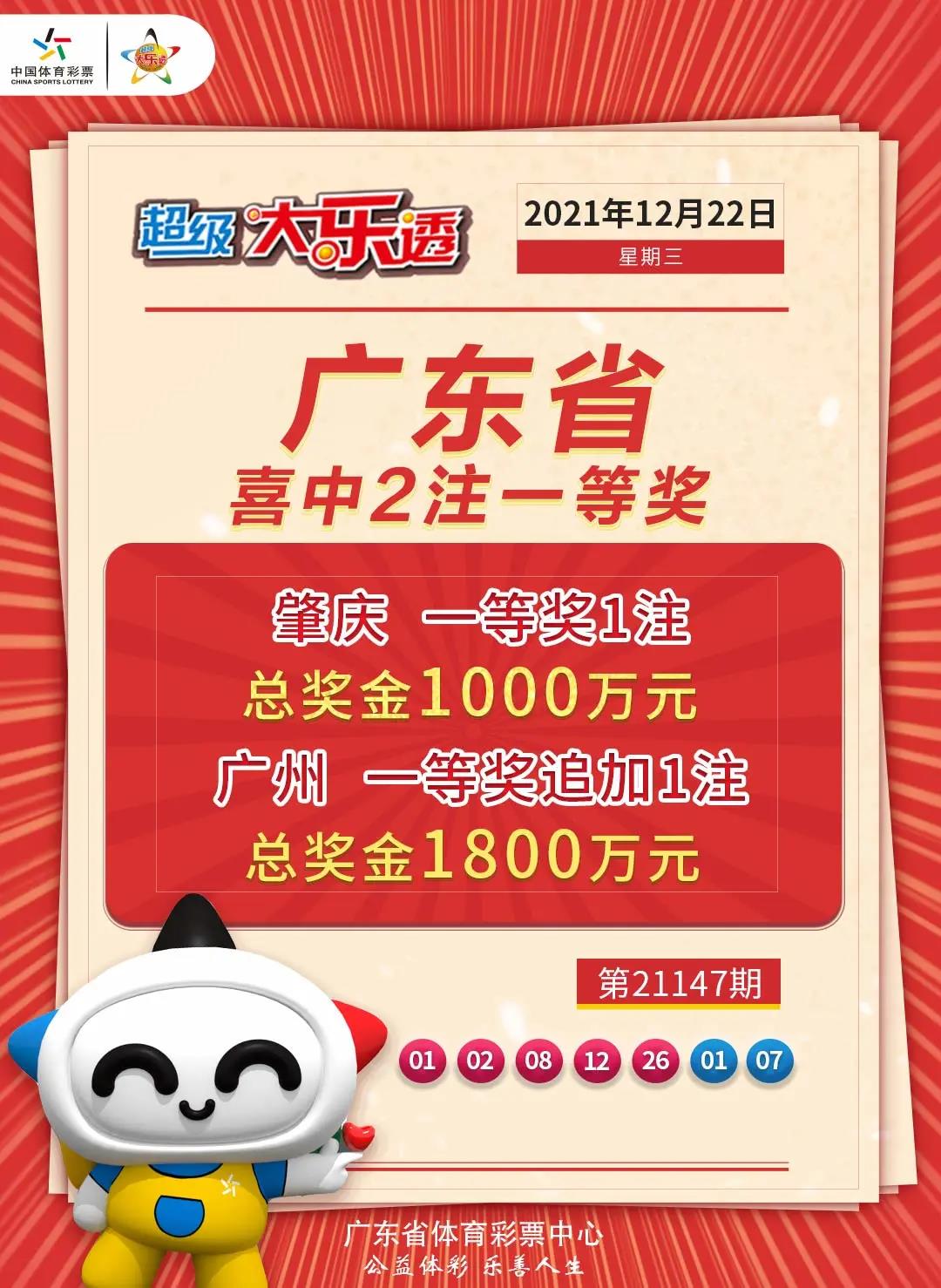 喜报!12月22日,超级大乐透第21147期前区开出号码“01、02、08、12、26”,后区开出号码“01、07”。本期全国销量为2.94亿元,为国家筹集彩票公益金1.06亿元。