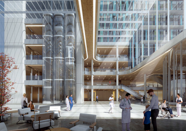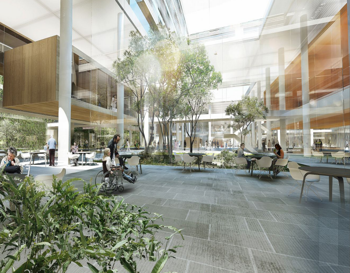 中山大学附属(南沙)口腔医院同时将标准诊疗区、住院护理单元等功能区块根据需求灵活划分和组合,围绕采光中庭形成环形走道布局,使得相关区域均实现自然采光,形成高效独立的医护空间。