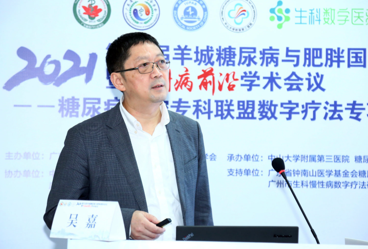 2021年12月18日,由广东省医疗行业协会、广东省中西医结合学会主办,广东省钟南山医学基金会糖尿病数字疗法专项基金、广州市生科慢性病数字疗法研究院支持的“第五届羊城糖尿病与肥胖国际论坛暨代谢病前沿学术会议”在广州圆满落幕。来自国内糖尿病研究领域的顶级专家到会,就当前糖尿病治疗中的前沿问题进行了学术研讨。这也是国内糖尿病研究领域的年度盛会。本次会议邀请专家包括:著名内分泌科专家李光伟教授,广东省医疗行业协会副会长、广东省医疗行业协会内分泌代谢科管理分会主任委员、中山大学附属第三医院副院长陈燕铭教授,中山大学中山医学院詹希美教授,广东省钟南山医学基金会理事长孙宝清教授和创会秘书长孙戎女士,广州市生科慢性病数字疗法研究院院长付承彬博士,中山大学附属第一医院曹筱佩教授,南方医科大学附属珠江医院张桦教授,南方医科大学第三附属医院李晨钟教授,广州市第一人民医院肖正华教授,广州市红十字会医院冉建民教授,广州市红十字会医院临床营养科主任谭荣韶教授,广州医科大学附属第五医院曾春平教授,深圳市第三人民医院吴嘉教授,佛山市第四医院叶一农教授等。吴嘉教授展示《糖尿病数字疗法 APP(糖尿病“数字药”)的研发,申请和转化》,表示糖尿病创新数字疗法—“数字药”将为糖尿病逆转策略带来新的希望。他表示,随着近年来苏志华技术的广泛应用,数字药物和数字疗法作为一种全新的数字健康解决方案,开始走进大众视野。不论是2020年4月美国卫生与公众服务部以及FDA联合发布的《用于在新冠疫情期间治疗心理疾病的数字健康设备的强制政策》,还是2020年11月中国境内首款获批的“数字药品”,都预示着着数字药物和数字疗法的加速。