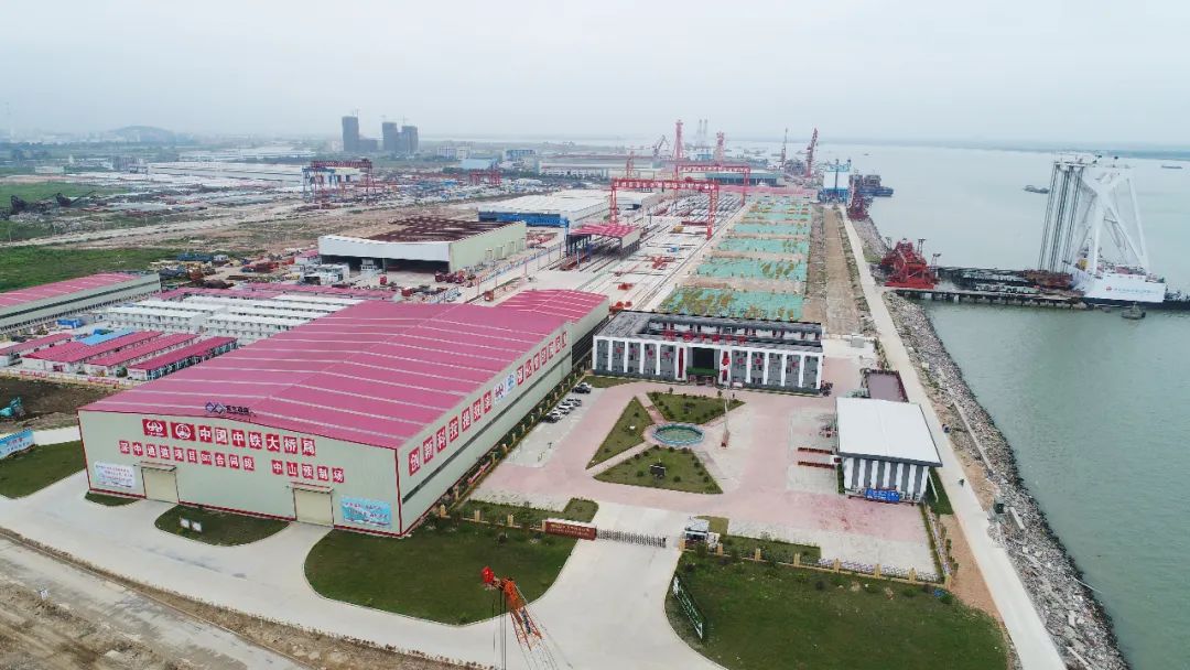 将钢梁装上运输船后,需要通过滑道梁、千斤顶将钢箱梁由运输船拖拉滑移至中山梁场出海平台。