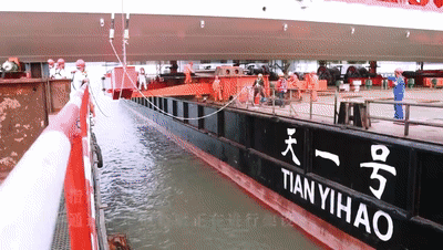 通常取梁工作在潮位最低时进行,架梁工作则在潮位最高时进行,因此,“发货”速度还得看天气,如果天气条件好,在同一天潮位允许的情况下,一天内可完成取梁和架梁工作,否则,架梁工作就只能等到第二天了。
