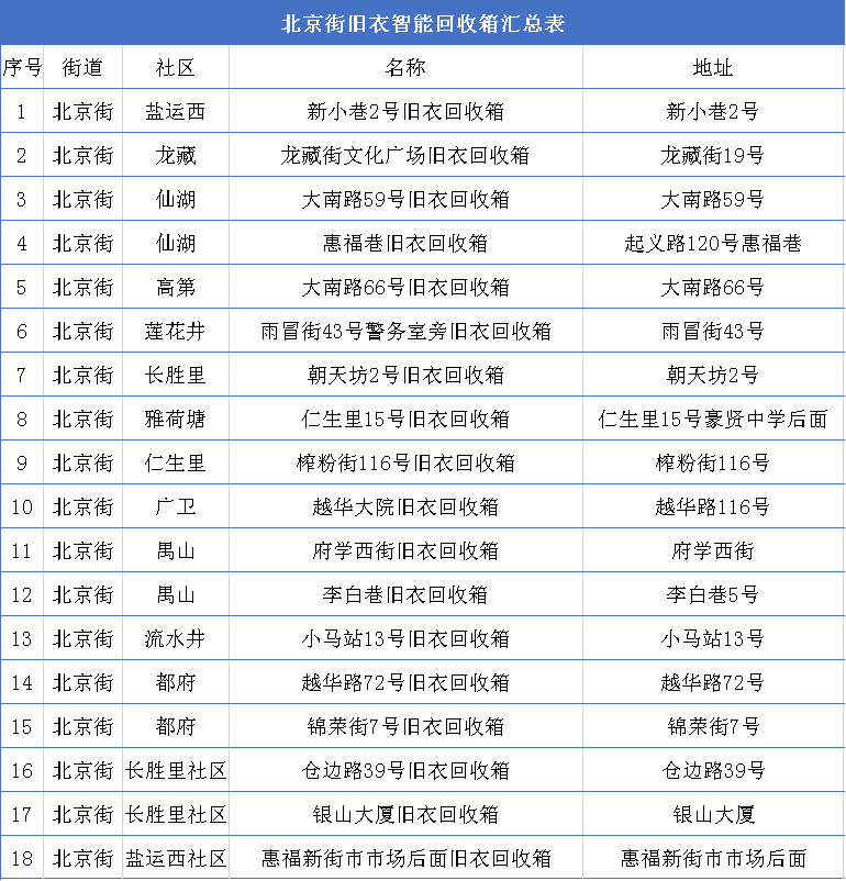 北京街旧衣回收箱一览表