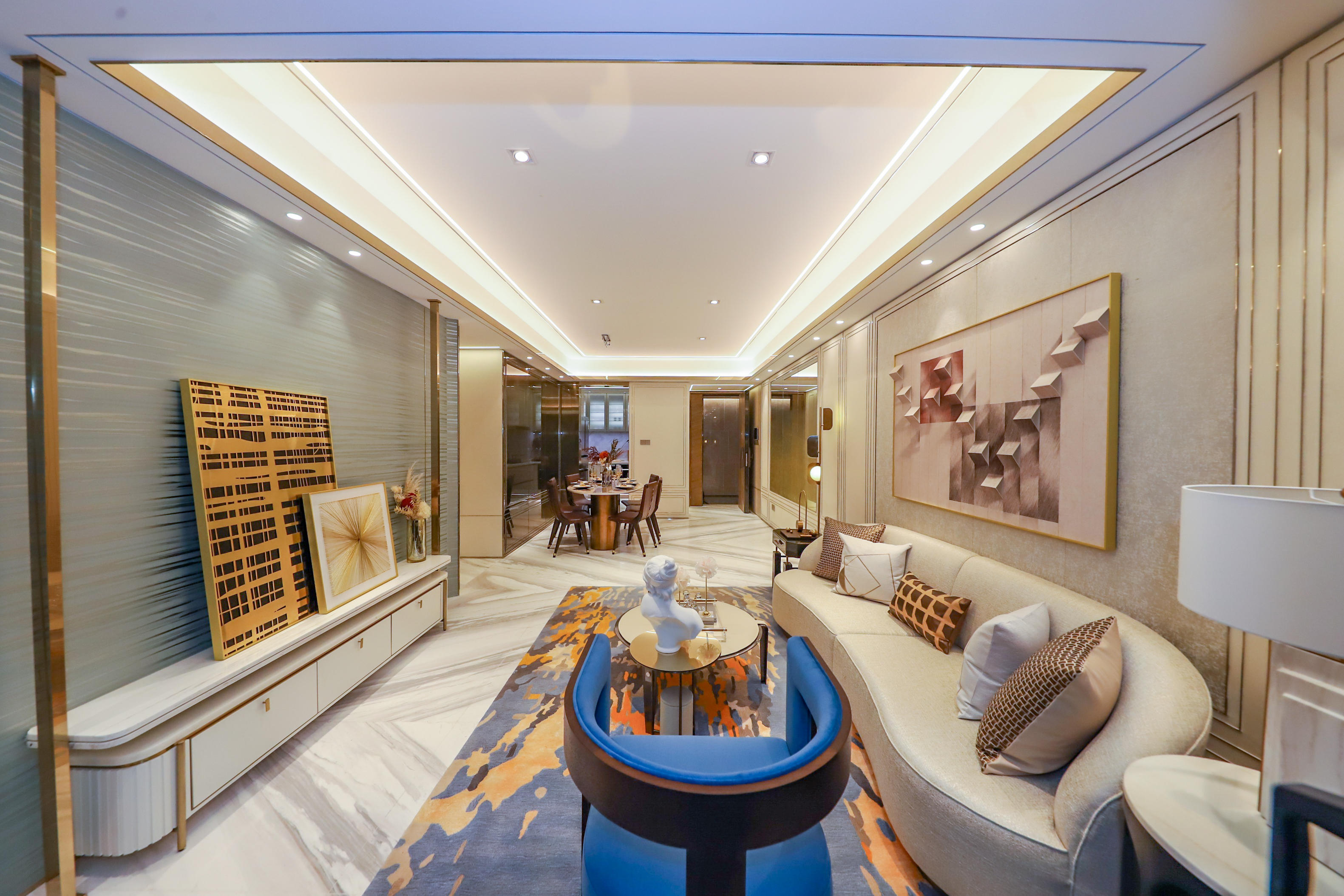 作为岭南新世界的“压轴之作”,新世界云耀位于整个社区12万㎡中轴广场旁的中心位置,与岭南新世界历经20年匠心打磨形成的全能生活圈配套,有着最舒适的距离,加上组团自身拥有独立围合的花园小区,真正实现入则宁静,出则繁华。现场可以看到,在新世界云耀的入口处,运用两个金属屏风作为组团瑰丽园林与外面繁华生活的区分,营造出从进门到园的三重景色,在不影响开阔性的同时最大程度保证了业主的生活私密感。小区内,在围合式布局下,每一栋住宅都能俯瞰项目内的中心园林。在视野不受户间遮挡的同时,园林尺度最大化。站在云耀之上,不仅可面对云里、云悦等地标,还能直望白云山景观,夜幕降临时,高低错落的建筑流光溢彩,更是美不胜收。