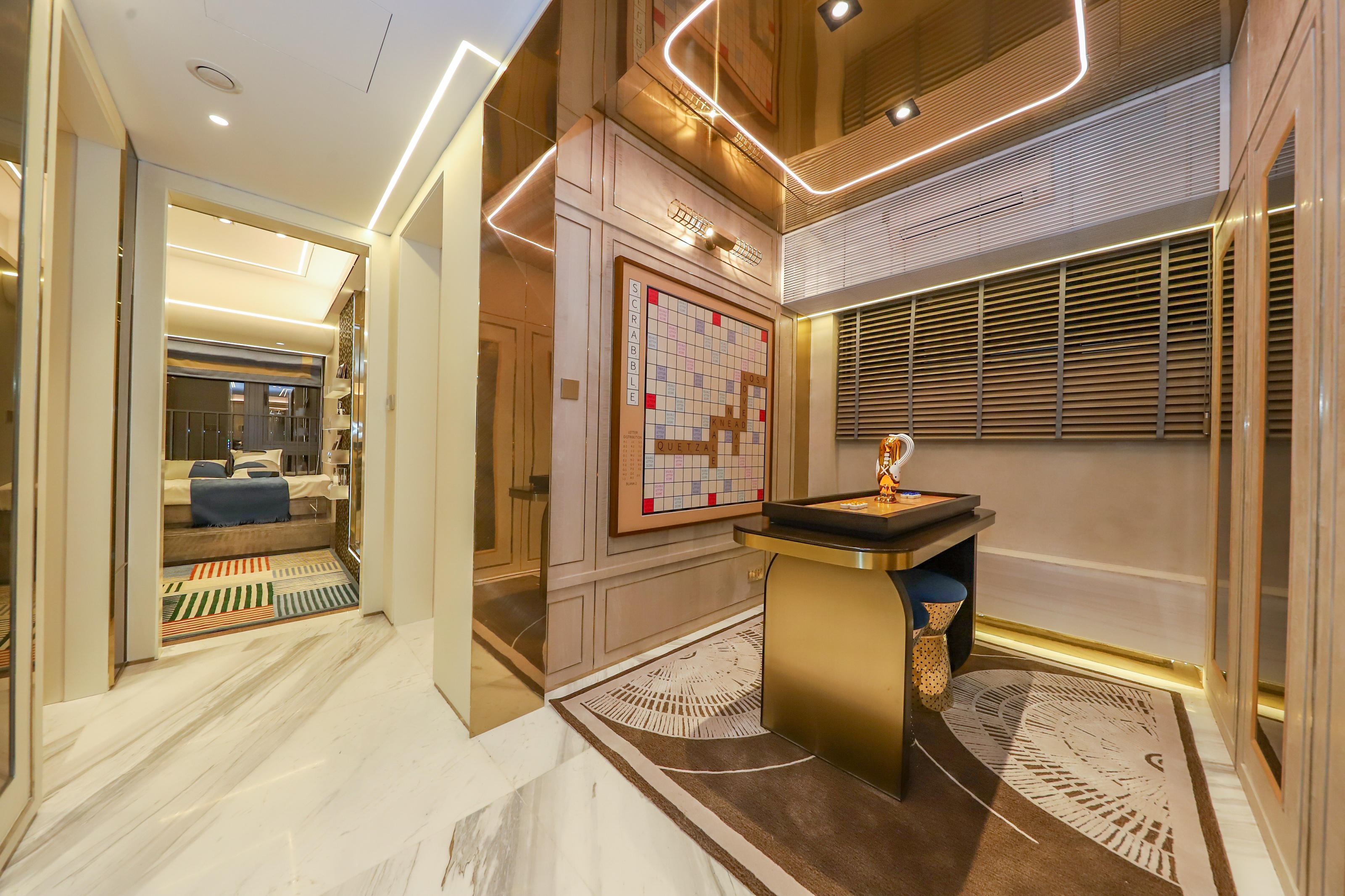 同样有五房使用空间,建筑面积约141平方米的产品在空间分配和使用上更上一层楼。这个双套房设计单位,对标二胎家庭,既能照顾父母,又能让两个孩子各有天地,还能有另外一个房间作为灵动的成长互动空间,这简直是生活最好的模样。可以看到,这样的多房体系,贯穿在新世界云耀所有产品的设计上。同等面积多一房的设计之所以成为目前设计师们共同的选择,是因为相比于空间的大小,空间的功能和使用方式更能体现生活的品质。业主们可以根据家庭成长的不同阶段以及对空间的实际需求来进行创意改造。多房设计让新世界云耀的产品具备超高成长性。每一个房间,都可以自己定义它的用途:书房、工作室、瑜伽室、儿童房、客人的卧室……它可以满足多种生活场景。即使随着时间推移,家庭结构变化,需求发生变化,也能灵活应对。