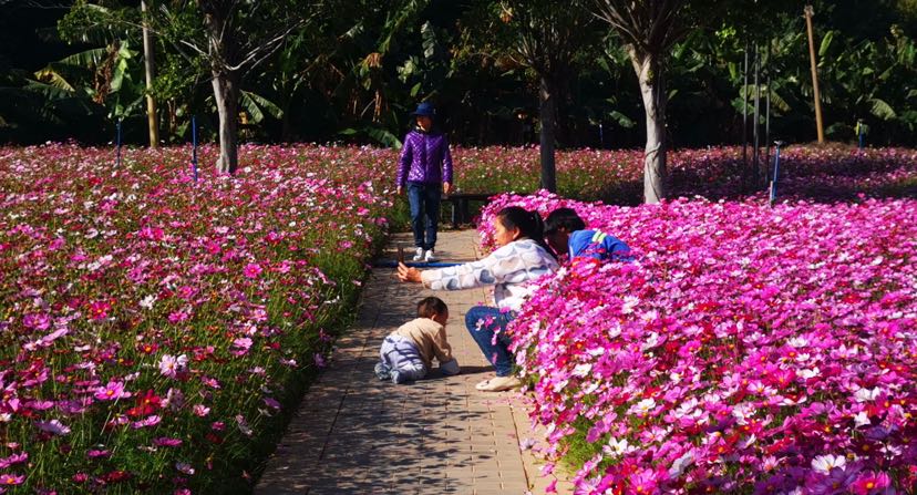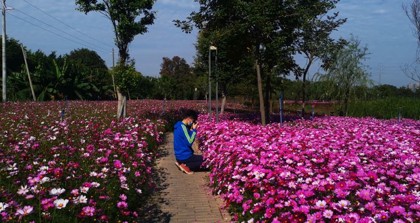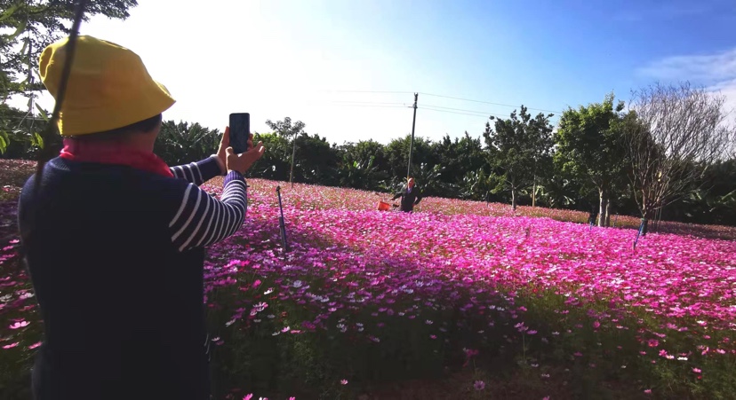 12月22日上午,雨过天晴。记者来到化龙镇水牛山公园附近的广州文化艺术村,呈现出一片花海,成片的格桑花在湖边灿烂绽放,有的花呈粉色,有的花浅红色,有的深红色,还有的含苞待放,放眼望去,姹紫嫣红。