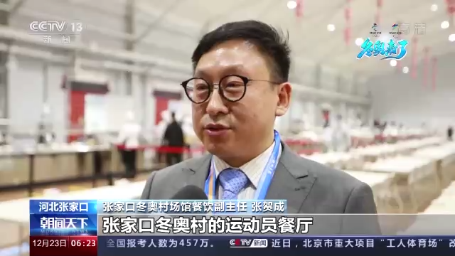 张家口冬奥村场馆餐饮副主任 张贺成:张家口冬奥村的运动员餐厅,主要特点就是体量非常大,由两部分组成,餐厅总面积是5225平方米,厨房是2670平方米,从餐厅构成来讲,我们的厨房和餐厅互相不会有交叉的。