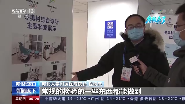 河北大学附属医院院长 程树杰:冬奥村的综合诊所按照一级医院的设置做的,有口腔科、康复医学科、耳鼻喉科、眼科,常规这些检验的一些东西都能做到。