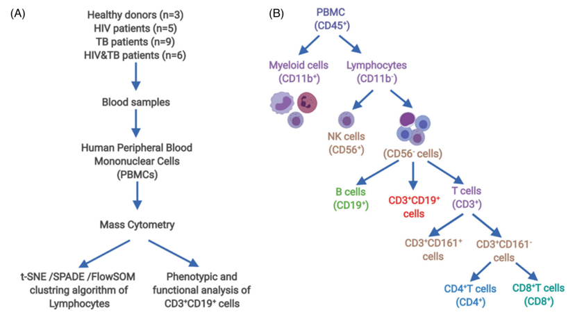 记者今日获悉,深圳市第三人民医院院长卢洪洲教授团队首次使用飞行质谱流式细胞术(CyTOF)对来自艾滋、结核及艾滋合并结核多个队列的患者外周血进行了免疫学的表征及分析,该研究成果发表于Clinical and Translational Medicine (IF:11.49)杂志上。该研究成果揭示了艾滋合并结核患者中CD3+CD19+淋巴细胞新亚群及功能,这项探索可能有助于科研开发HIV、Mtb及HIV-Mtb 合并感染的靶向治疗药物或新策略。