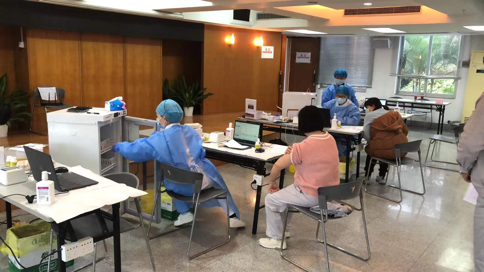 群众接种完疫苗后,在现场留观30分钟