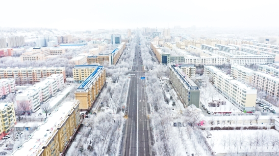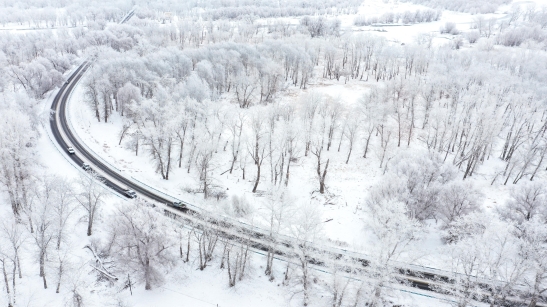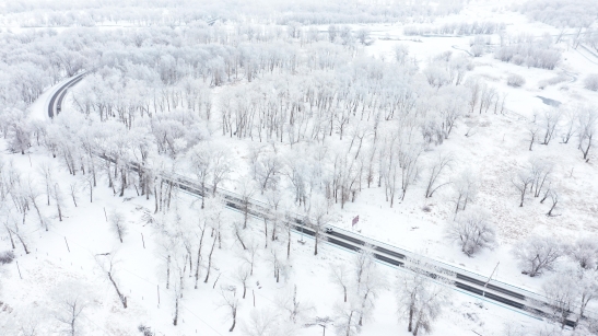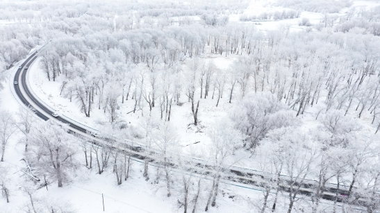 2021年12月23日,新疆生产建设兵团第十师北屯市出现雾凇美景,玉树琼枝,晶莹剔透,犹如童话世界。