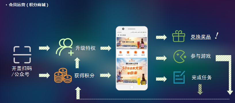 同时,通过建立会员管理平台,对以“一瓶一码”为切入口所沉淀的会员形成运营体系,消费者不仅可以通过扫码核验产品真伪,也能获得积分参与积分商城活动,积分抽奖、玩游戏、换礼品等多种活动的上线,有效提高消费体验。