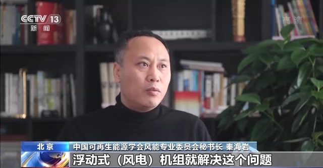 中国可再生能源学会风能专业委员会秘书长 秦海岩:浮动式(风电)机组就解决这个问题,不用打这么深,风机漂浮在那儿,直接装好机器就可以运到场地。