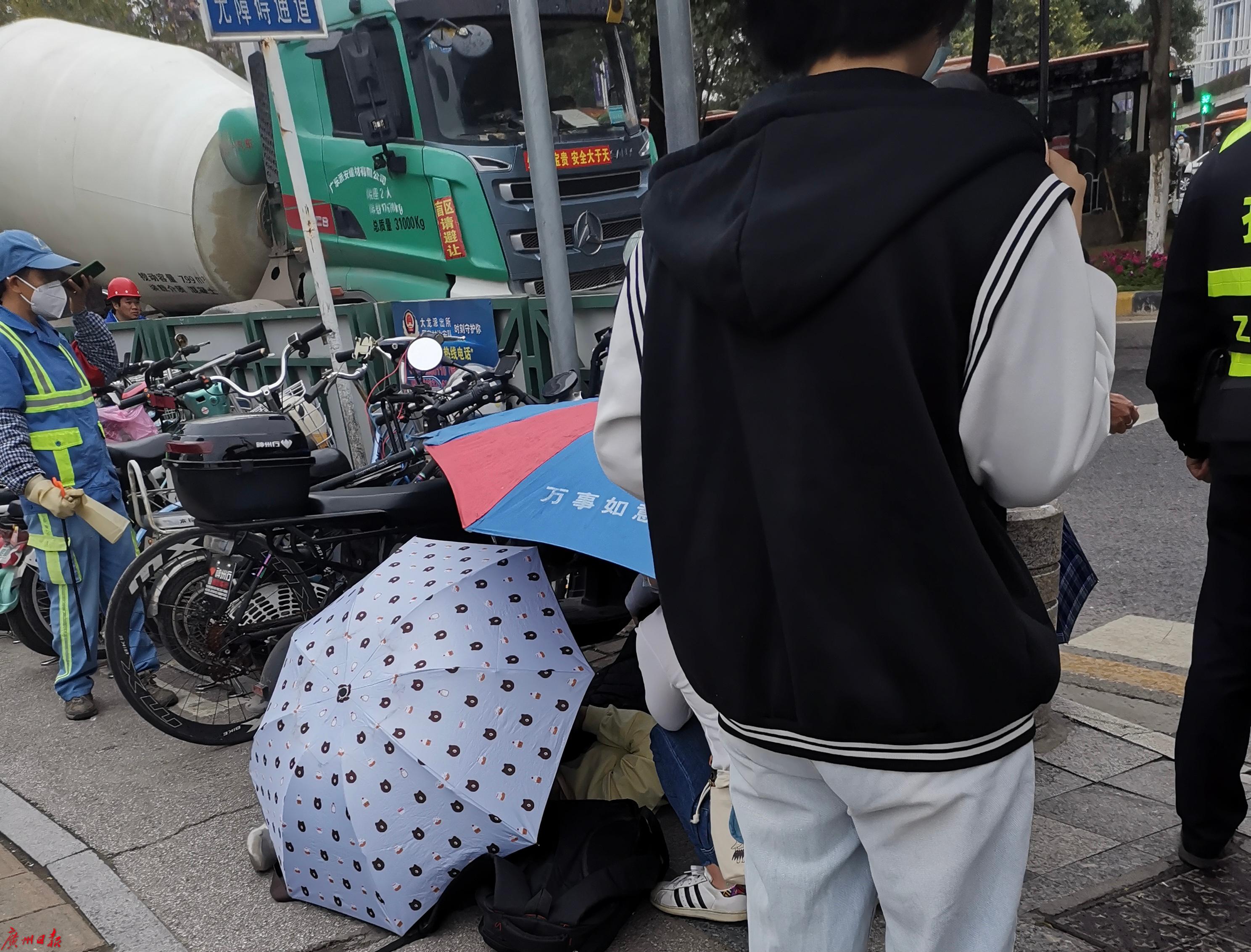 23日上午9时10分左右,龙大哥像往常一样在亚运大道永旺梦乐城路口值守,他目击了整个过程。