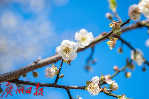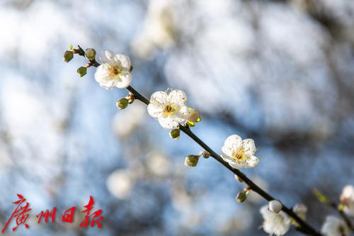“遥知不是雪,为有暗香来。”冬日里,梅花成了山林间的主角。今年受到气温影响,梅花花期普遍提早。在广州从化吕田镇桂峰村的流溪河源头处,12月底已有了“梅花三弄”的景象。“梅花一弄”含蓄,“梅花二弄”热情,而到了“梅花三弄”之时,白花尚未落尽,嫩绿的新叶已从枝条里悄悄抽出,白绿相间,构成一幅独特的冬日美景。如果今年还未赏过梅花,不妨趁着“梅花三弄”的尾巴,来桂峰村一游,一睹这独特的花景吧。