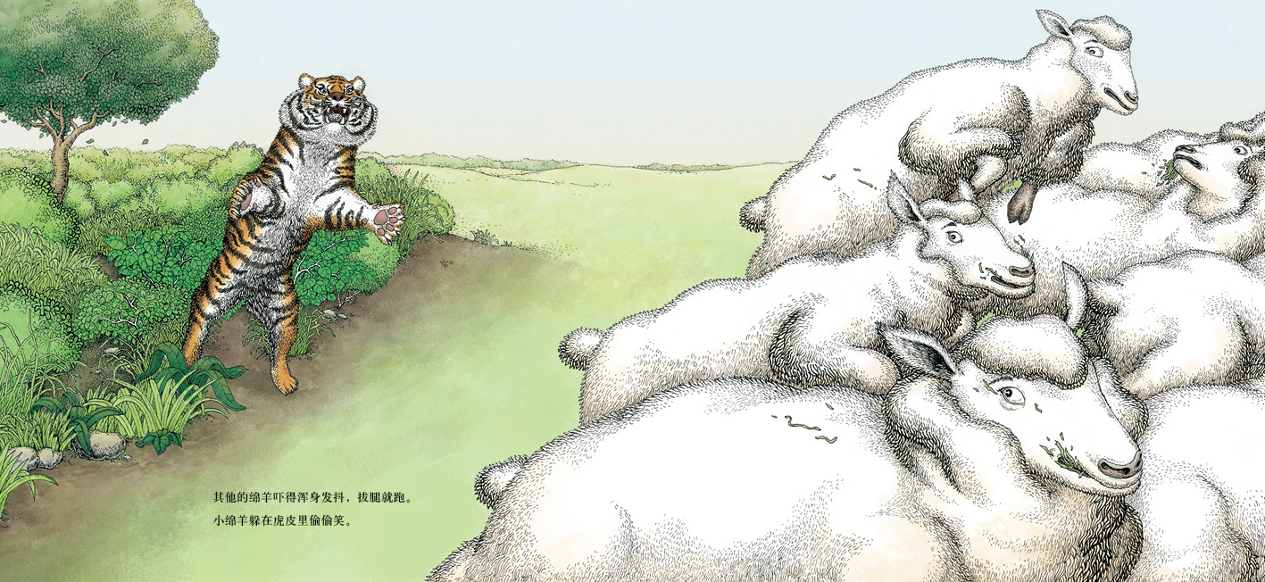 《小羊扮老虎》改编自《法言》,讲述了一只弄虚作假的小羊的寓言故事。