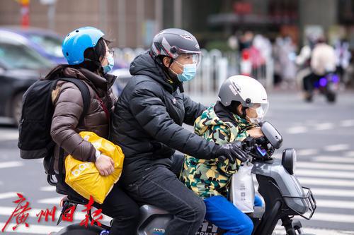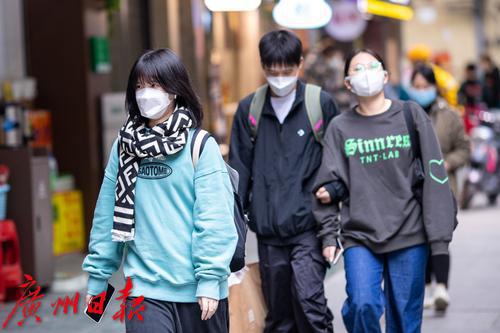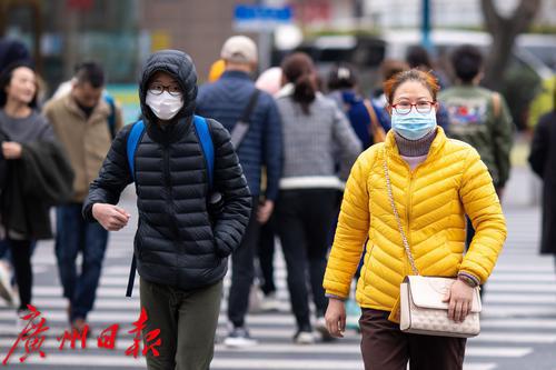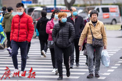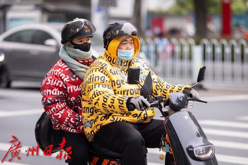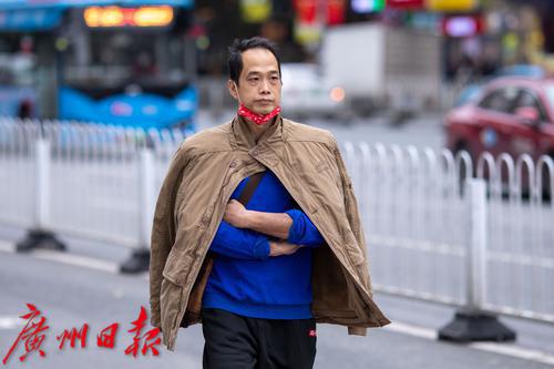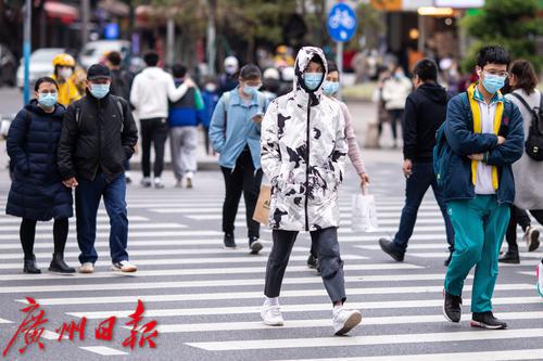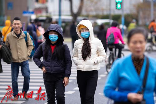 大降温,广州街头到处都是穿着羽绒服厚外套的市民。