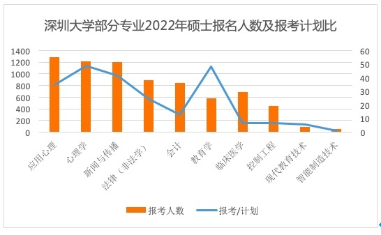 《报告》分析了深圳大学2022年硕士研究生报考情况,从深圳大学2022年硕士研究生报考人数来看,应用心理、心理学、新闻与传播成为网报人数排前三的专业,均突破千人。而智能制造技术、现代教育技术等理工科专业报考不足百人,差异较大。
