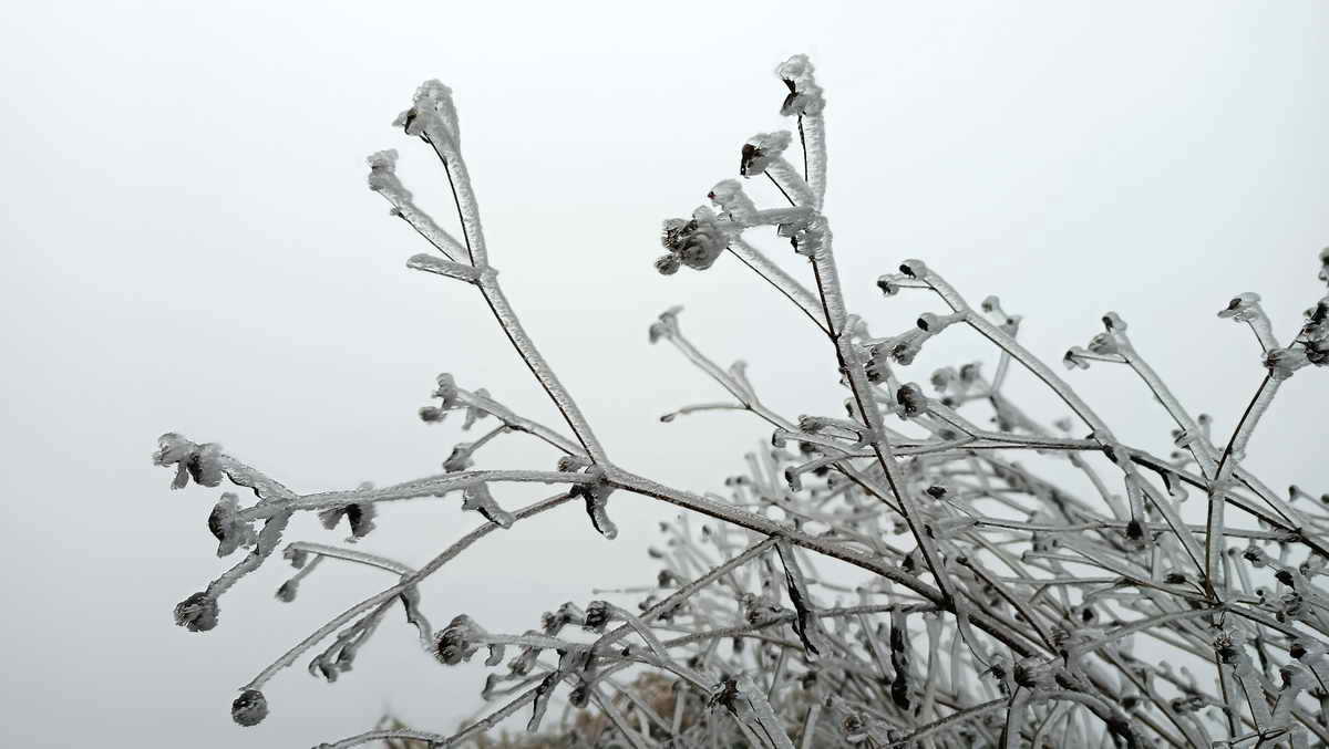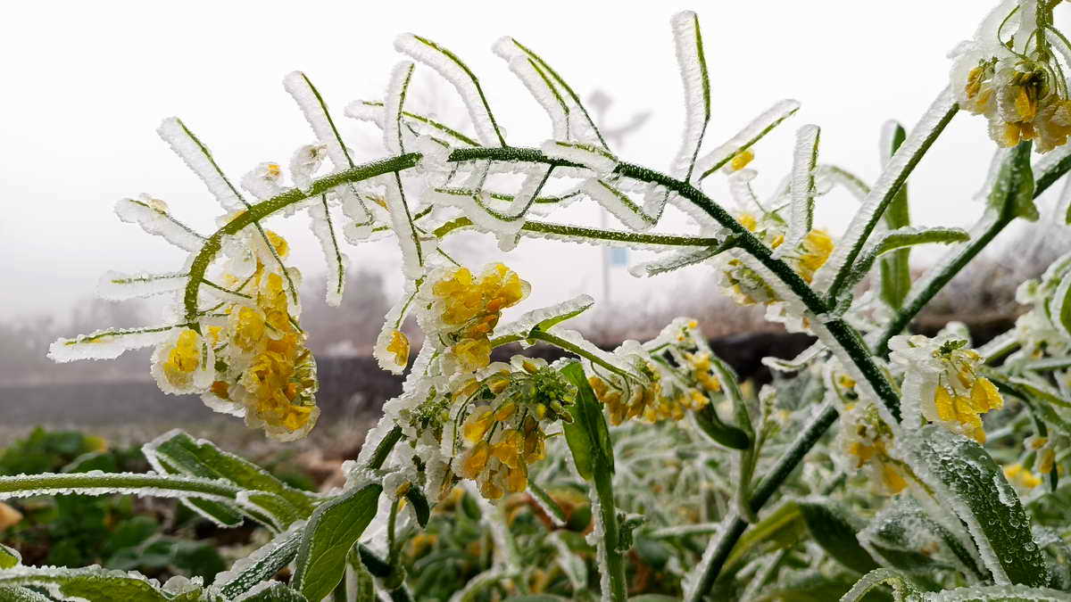 严寒不仅冻住了贸然造访者的手脚,而且仿佛也将世界时间静止了下来。除了呼呼作响的寒风,山间一片一片寂静。让人不忍心打破这一片静谧与素白之美,记者的身体动作逐渐变得有些笨拙迟缓,思维也缓缓进入凝滞、朦胧状态。唯有四周怒放的“白梅”、“银菊”、“水晶芦花”迎风摇曳,不时掉落厚厚的冰凌激起旷野里一阵悠扬的回响。
