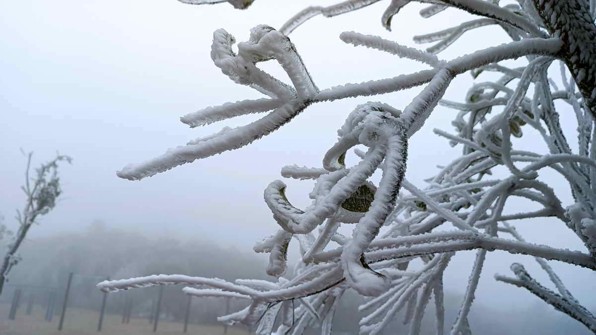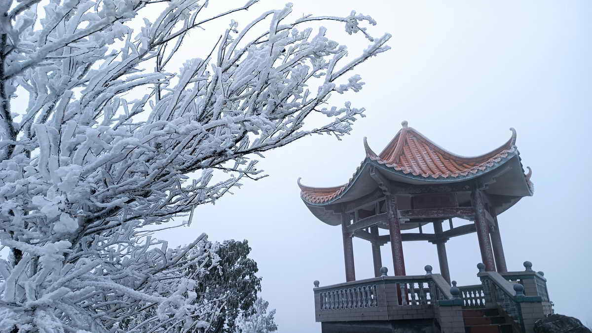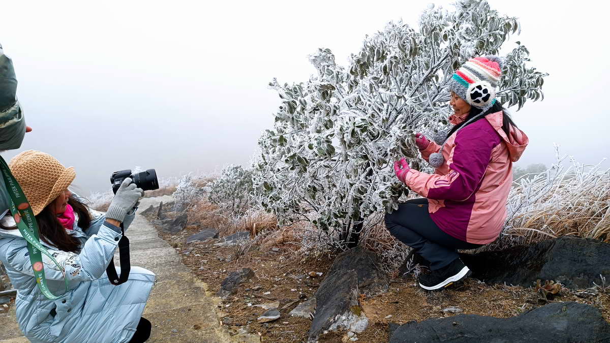 12月27日,受南下寒潮影响,韶关市乳源县、始兴县、乐昌市等地的高海拔山区持续出现雾凇及冰挂现象,粤北大地上幻化出一片“忽如一夜春风来,千树万树梨花开”的壮美北国风光。