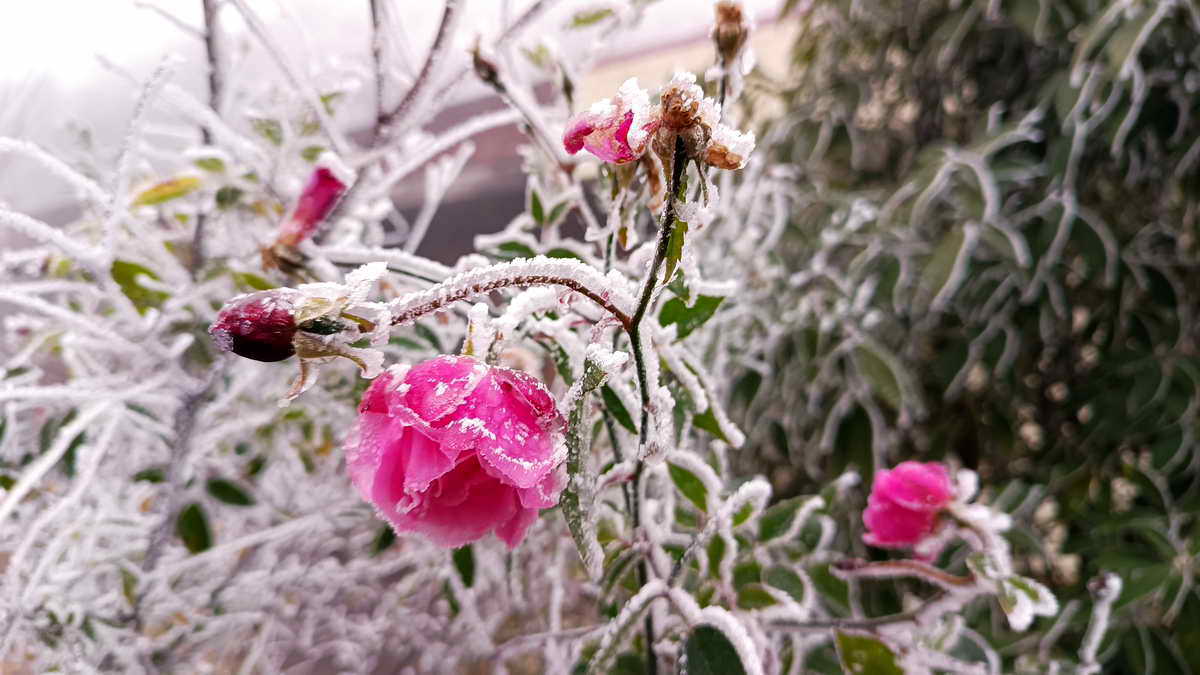 而身边一棵棵、一株株的大小树木上,一夜之间怒放了一团团、一串串玲珑剔透的花瓣,仿佛还散发着清冽的花香。漫步其中,曾经生机勃勃的世界也仿佛静止成为一个美丽的童话世界。