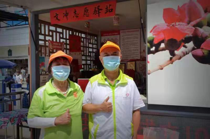 严德香夫妇均是文冲志愿驿站的志愿者。(受访者供图)