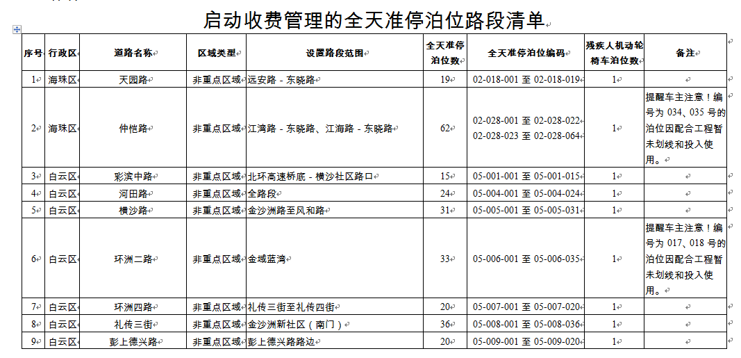 信息时报讯(记者 王思雨 通讯员 广州市道路事务中心)为规范管理广州市中心六区城市道路临时泊位,市交通运输部门计划自2022年1月1日起,对海珠区天园路、白云区彩滨中路、黄埔区创业路等26条城市道路临时泊位停放的车辆,按照《广州市中心六区城市道路临时泊位使用费标准》启动收费管理。