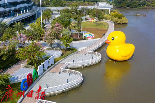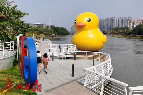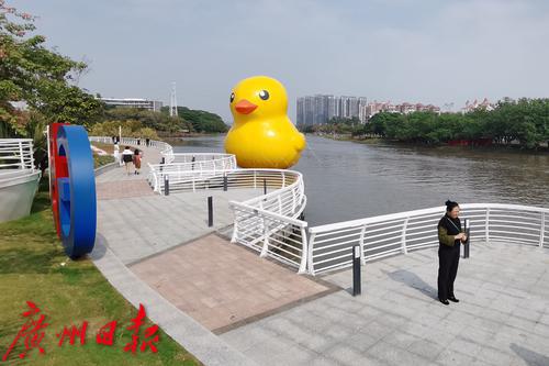大黄鸭“游“到南沙创享湾,成为市民的又一网红打卡点。