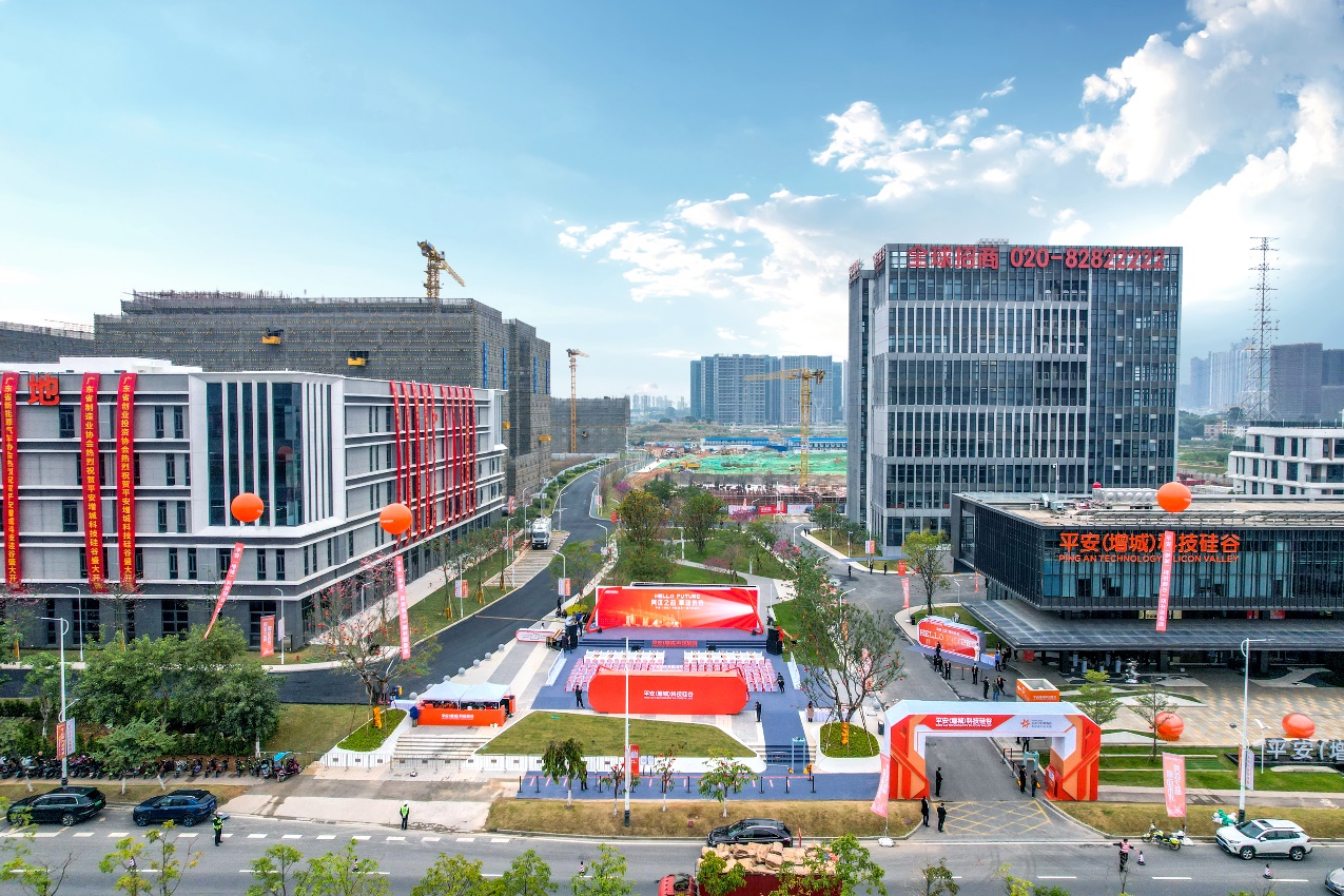 据介绍,平安(增城)科技硅谷项目规划总建筑面积110万平方米,分三期开发。其中,项目一期自2019年11月动工建设,目前已建成2栋超级厂房、1栋科创中心、5栋企业总部和2栋人才宿舍,总面积11.69万平方米,目前已全部交付使用。