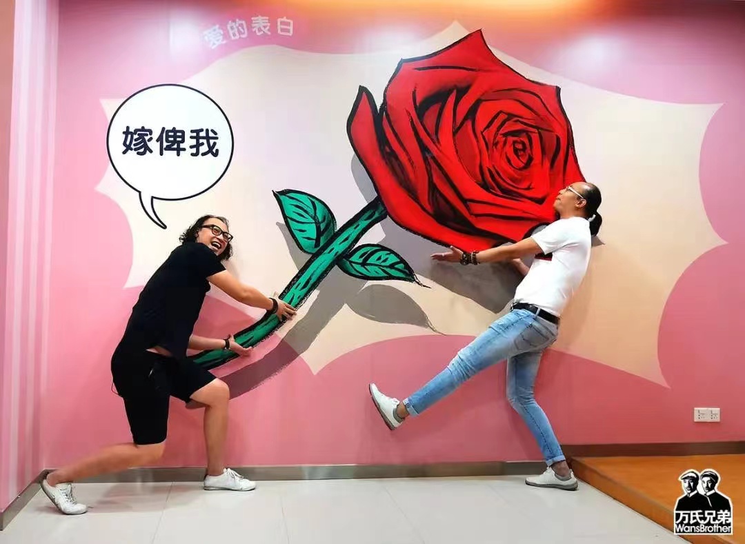 “万氏兄弟”在广州的出圈,始于今年初北京路商圈爆红的府学西街3D涂鸦墙。根据《北京路步行街改造提升总体规划》,北京路周边0.43平方公里的范围内进行改造提升,打造“国潮活力、国际魅力、文化动力、美食热力、动漫魔力”五大特色主题产业分区,府学西街被划入动漫魔力特色主题区,“万氏兄弟”受邀成为400米长府学西街墙画的主创团队之一。府学西街曾是广州古代书院所在地,文风兴盛,在时代的发展中演变成一条民居和围墙各居两边的老街。在艺术家的画笔之下,老旧的街面有了亮色,注入了动漫、广府风情、错觉艺术等元素,一时间吸引打卡者众。 此后,“万氏兄弟”的3D画陆续出现在荔湾区民政局婚姻登记处、广州坦尾地铁站附近等地,为人们装点新婚的甜蜜、驱赶行路的无聊。