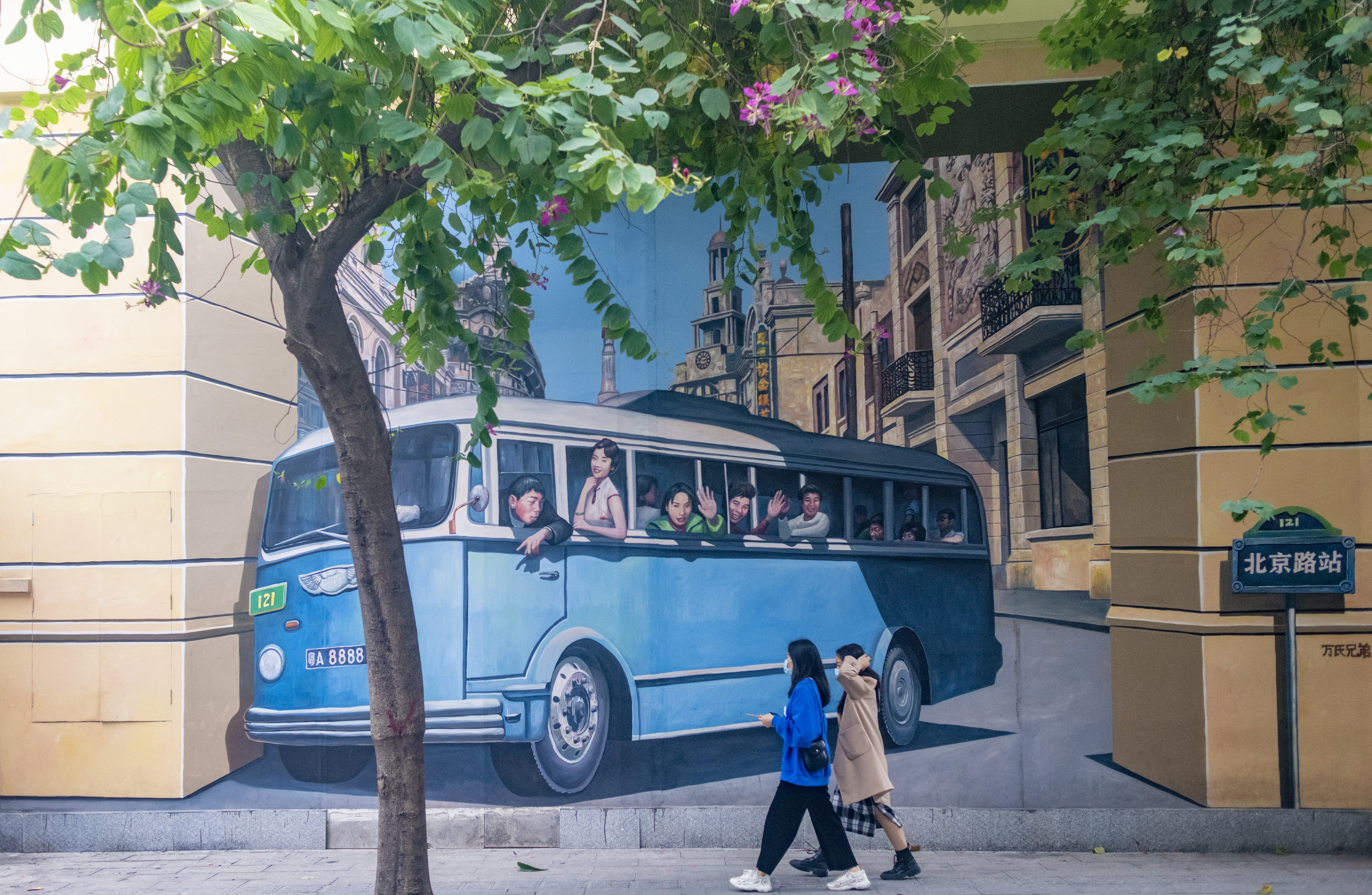 位于广州越秀区北京路商圈的府学西街涂鸦墙,是近一年来新晋的打卡旺地。不少市民游客一定对满墙巨幅的3D画有印象,并和它们亲密互动过。无论是趣味满满的猫咪、糖果屋、百宝箱,还是充满广府风情的醒狮、茶楼、凉茶铺、公交站,涂抹在墙面的人与物,仿佛要跳入三维空间,与游人互动。
