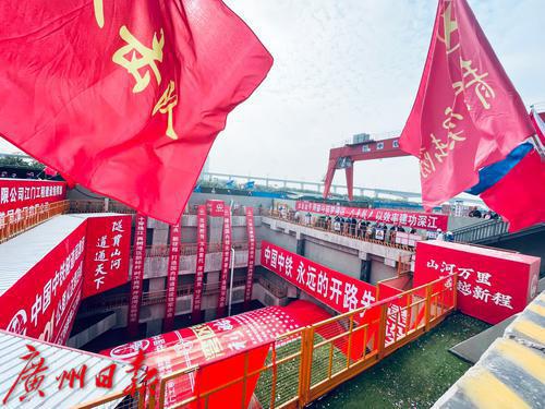 深江铁路珠江口隧道的“大湾区号”盾构机成功在广州南沙始发。