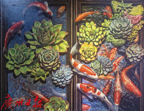 广府文化中鲤鱼寓意聚财,万以珩将传统元素融入3D画这种新形式的创作。