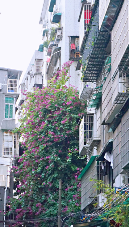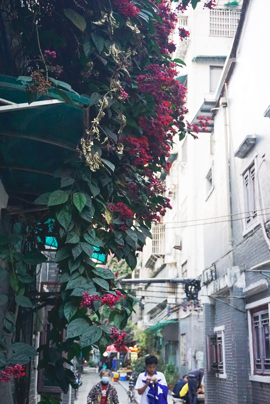 西关街巷里,抬首张望,有花海瀑布从窗边流下;俯身搜寻随处可见小花档传递芬芳……
