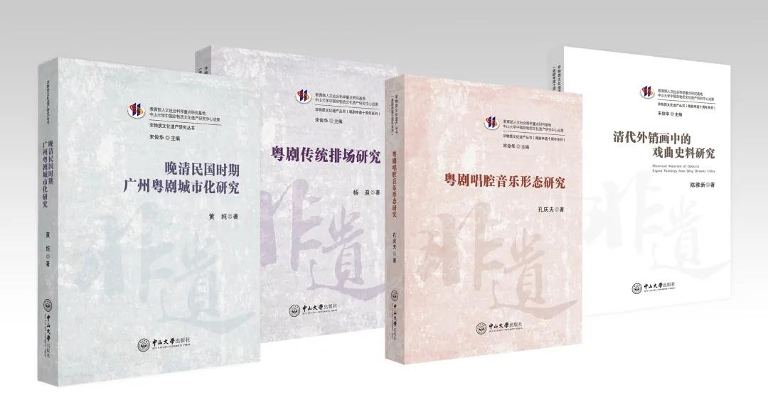 本次推出的非物质文化遗产研究丛书——粤剧系列共四本:《晚清民国时期广州粤剧城市化研究》(黄纯著)、《粤剧唱腔音乐形态研究》(孔庆夫著)、《粤剧传统排场研究》(杨迪著)和《清代外销画中的戏曲史料研究》(陈雅新著)。