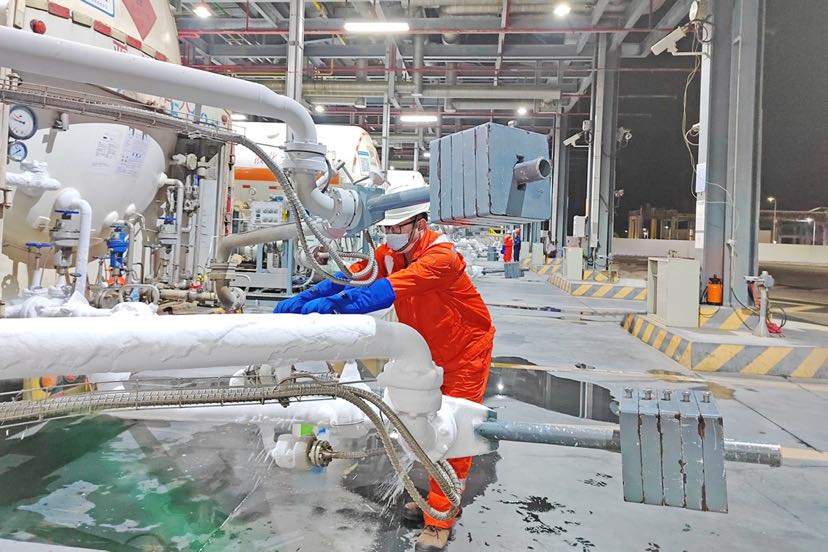 深圳LNG接收站拥有四个16万立方米全容储罐、一座可接卸3-26.6万立方米LNG 船专用泊位及配套气化外输设施。2018年投产运营以来,深圳LNG市场开拓团队主动对接下游终端用户,洞察市场,优化提气计划,满足客户增量窗口需求;生产运营、技术维修团队不断提高生产运行能力、班组操作水平和设备设施可靠性。经过3年的厉兵秣马,深圳LNG成功通过“体能测试”,利用优化工艺、气量调控、计划提报等内部提升举措,具备了最高可达680万吨外输重任的能力。
