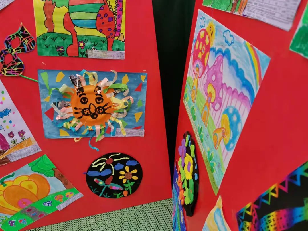 有喜庆活泼、构思精巧的新年手工作品;有线条流畅、美不胜收的水彩画;有设计独特、色彩缤纷的黏土制作;还有环保自然、创意满满的树叶粘贴……仔细观赏每一幅作品,仿佛进入了孩子们用画笔编织的童话世界。