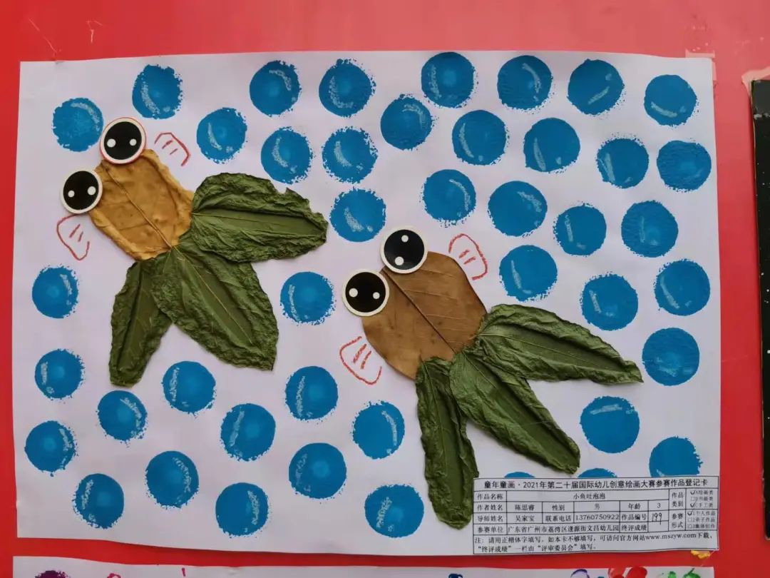 走进展览现场,一幅幅作品令人惊叹。破碎的鸡蛋壳、枯黄的落叶、废弃的纸张等等这些生活中的常见物品,都成为孩子们手工绘画的材料。
