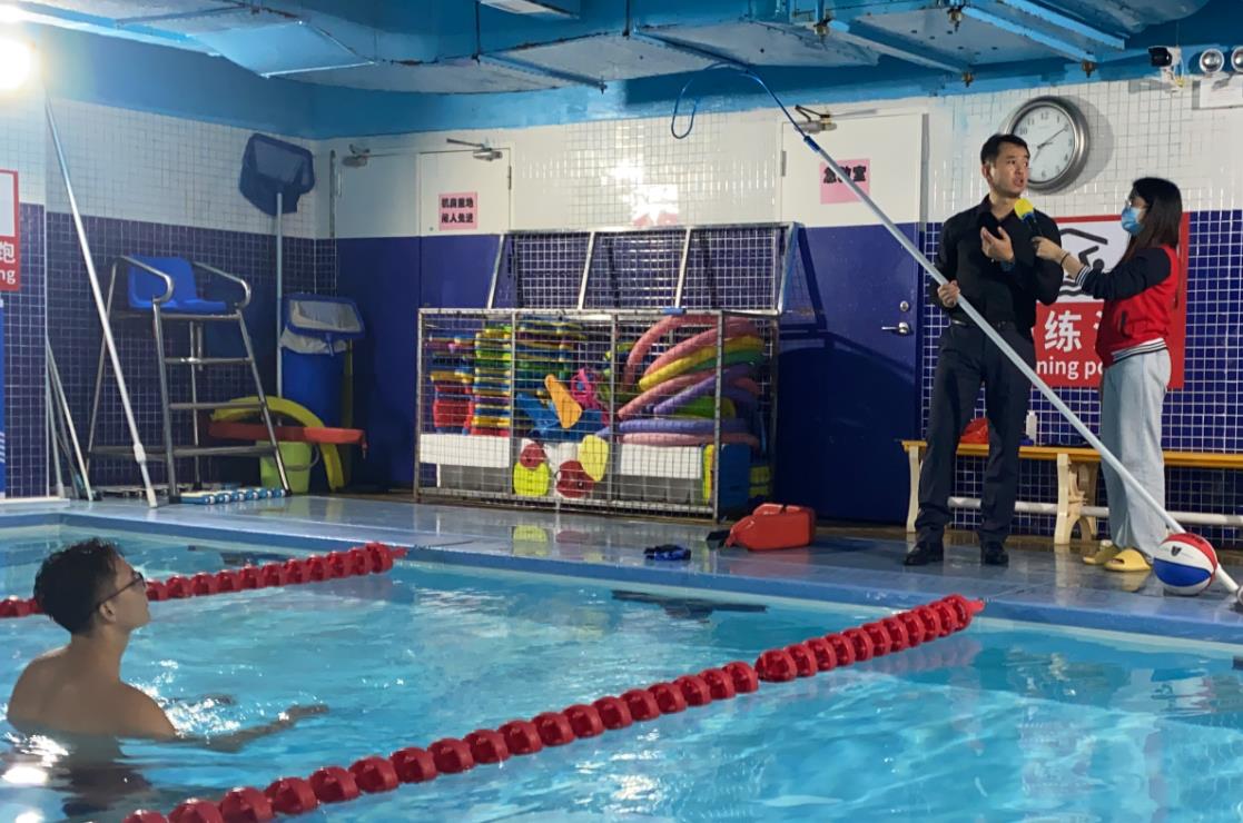 申勇老师还在泳池边给大家实际模拟了真实的落水施救环节。