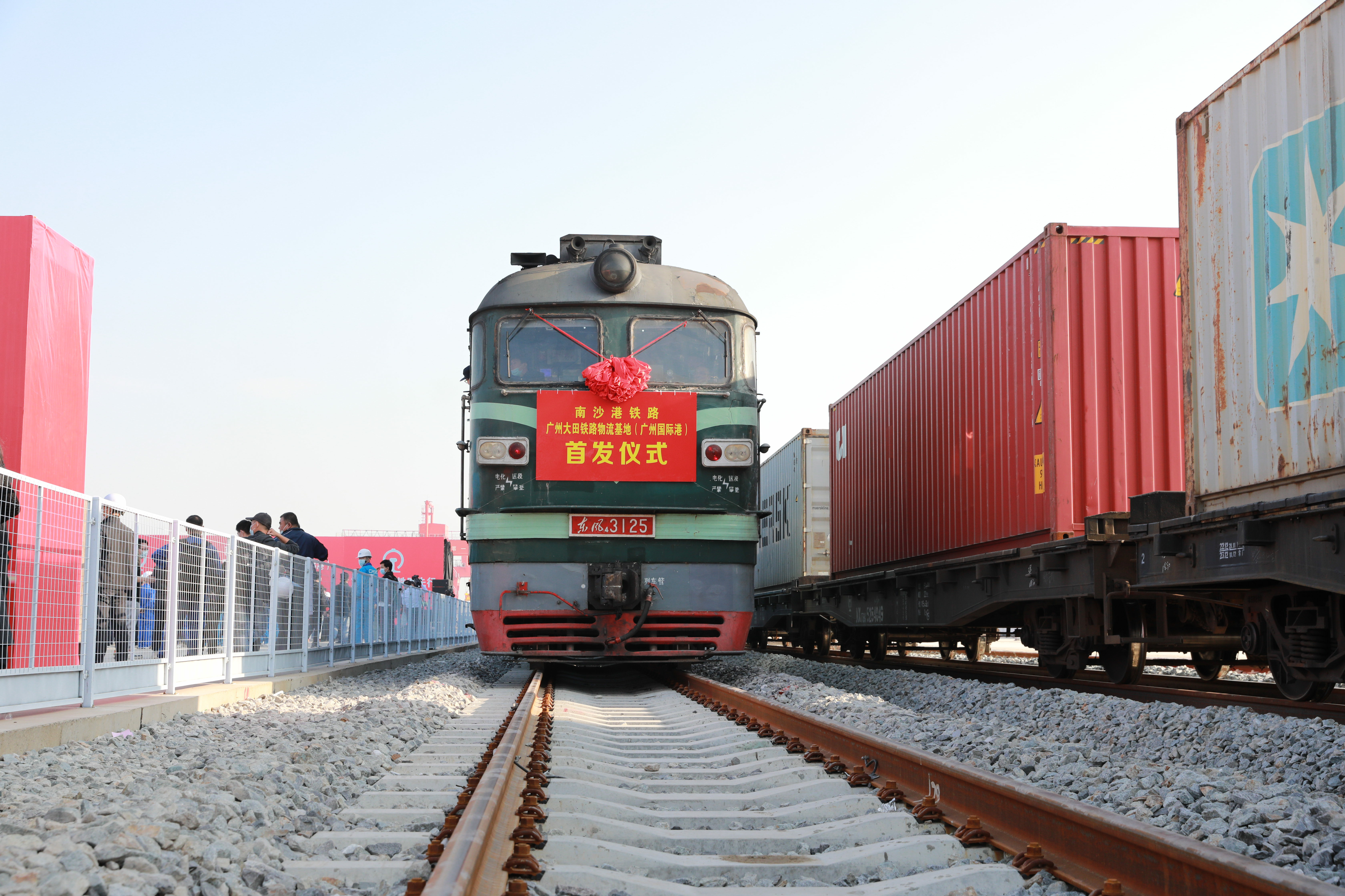 12月31日,伴随着一声嘹亮的火车汽笛,两列满载着粮食、木材、钢材等货物的首发列车从南沙港铁路南沙港站缓缓驶出,发往湖南、江西、重庆等内陆地区,标志着南沙港铁路正式开通运营。