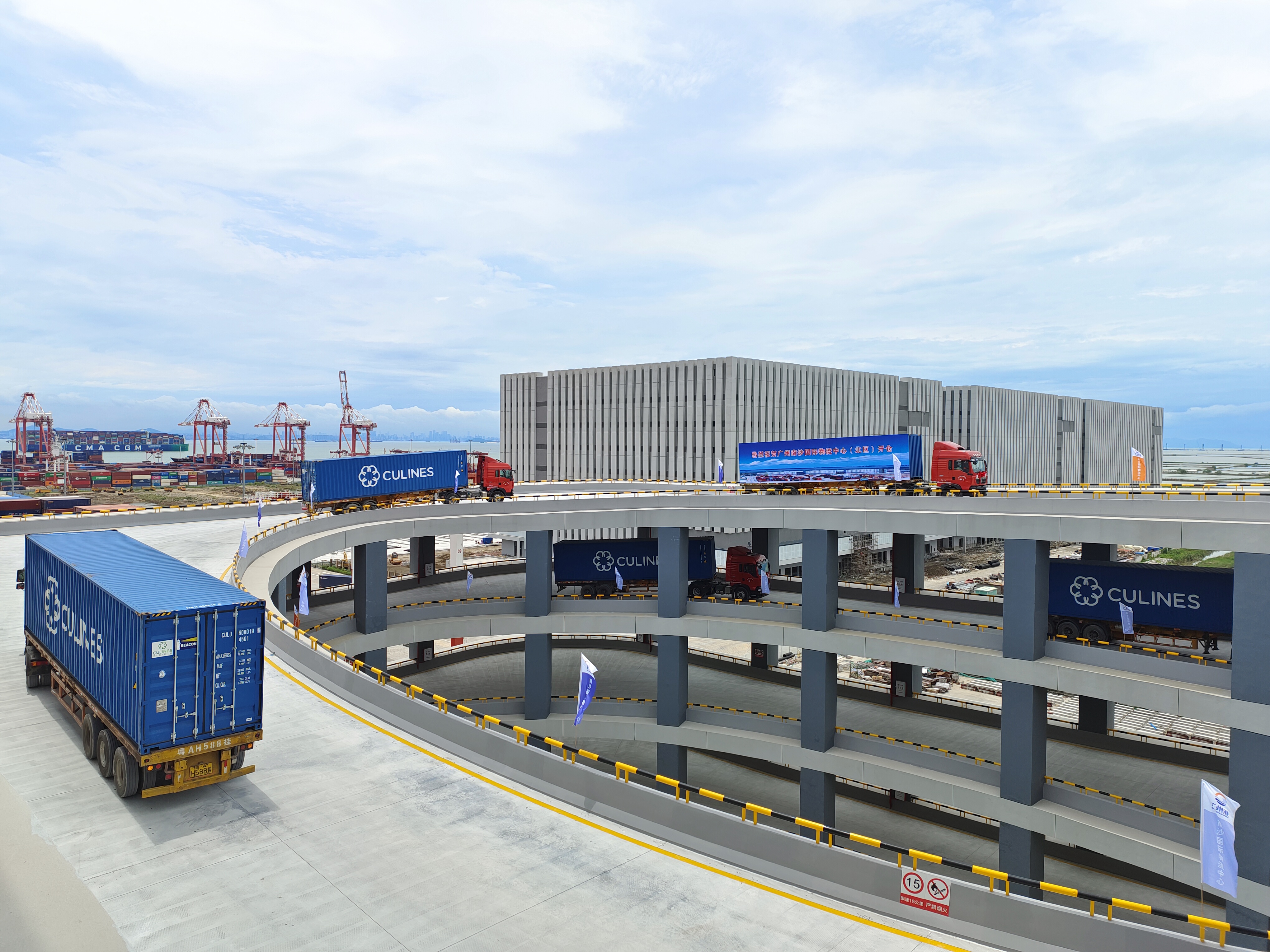 据介绍,南沙港区内建有大型临港海铁联运综合物流园——南沙国际物流中心,项目地处南沙港后方,前港后仓,总建设面积为95万平方米,总体仓容71.2万吨,是目前全国最大的临港仓库群。物流中心分为北区和南区工程。北区工程以出口为主,进口为辅,着力打造“湾区国际集拼中心”,业务覆盖项目物流、买家出口集拼、国际中转集拼、新业态跨境电商物流及海铁联运物流服务等,已于今年6月23日试投产运营。