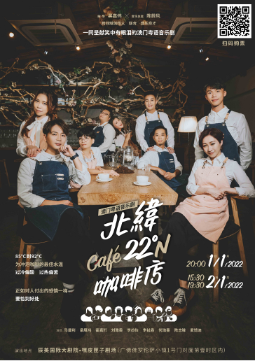 《北纬22°咖啡店》由著名香港舞台剧《南海十三郎》《我和春天有个约会》导演黄树辉担任艺术顾问,由澳门新晋全才导演吴嘉伟和资深音乐制作人陈蔚风强强联手,联合澳门多位实力戏剧演员及著名歌手,将音乐、舞蹈、戏剧等诸多舞台元素配合成一部清新佳作。