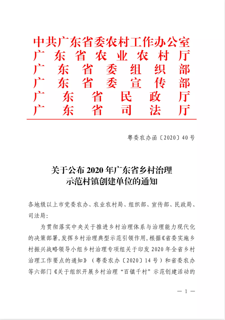 12月30日,记者从广州市白云区获悉,广东省委农办、省农业农村厅、省委组织部、省委宣传部、省民政厅、省司法厅日前共同向钟落潭镇颁授“广东省乡村治理示范镇”荣誉牌匾。