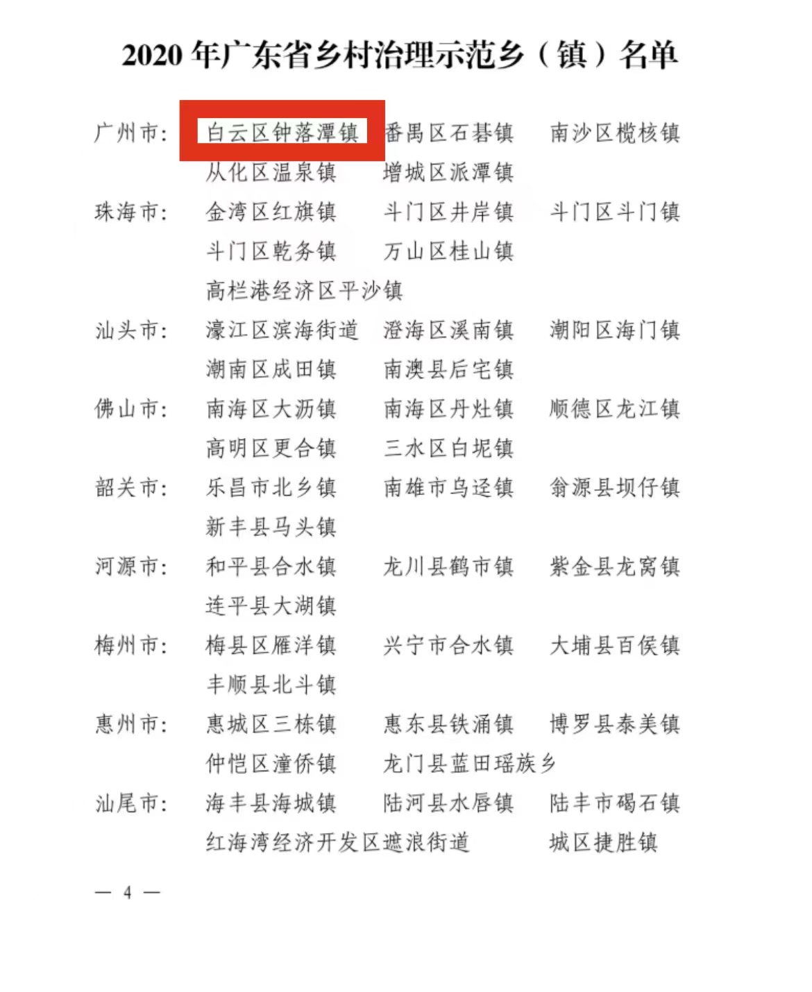 据悉,2021年1月,钟落潭镇被评为“2020年广东省乡村治理示范镇”,广州市仅5个镇获此殊荣。今年,钟落潭镇两次顺利通过上述部门的实地监测和考核后,最终喜获该荣誉牌匾。