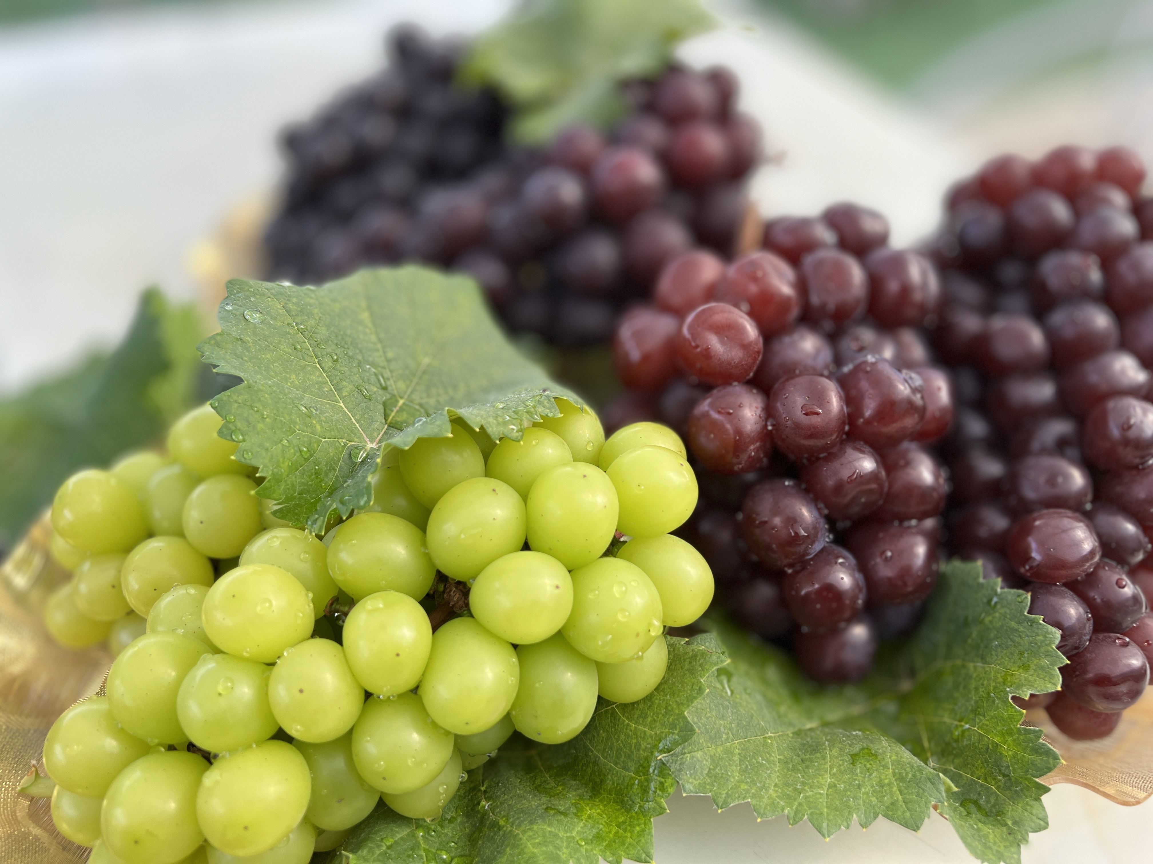 五彩缤纷的葡萄各具特色。青绿色的“香印青提”香味浓郁,汁多清甜;深黑色的“黑玫瑰”无核多汁;“浪漫红颜”果肉爽甜;外形独特的“蓝宝石”脆甜无渣。眼下,四款葡萄均可采摘。