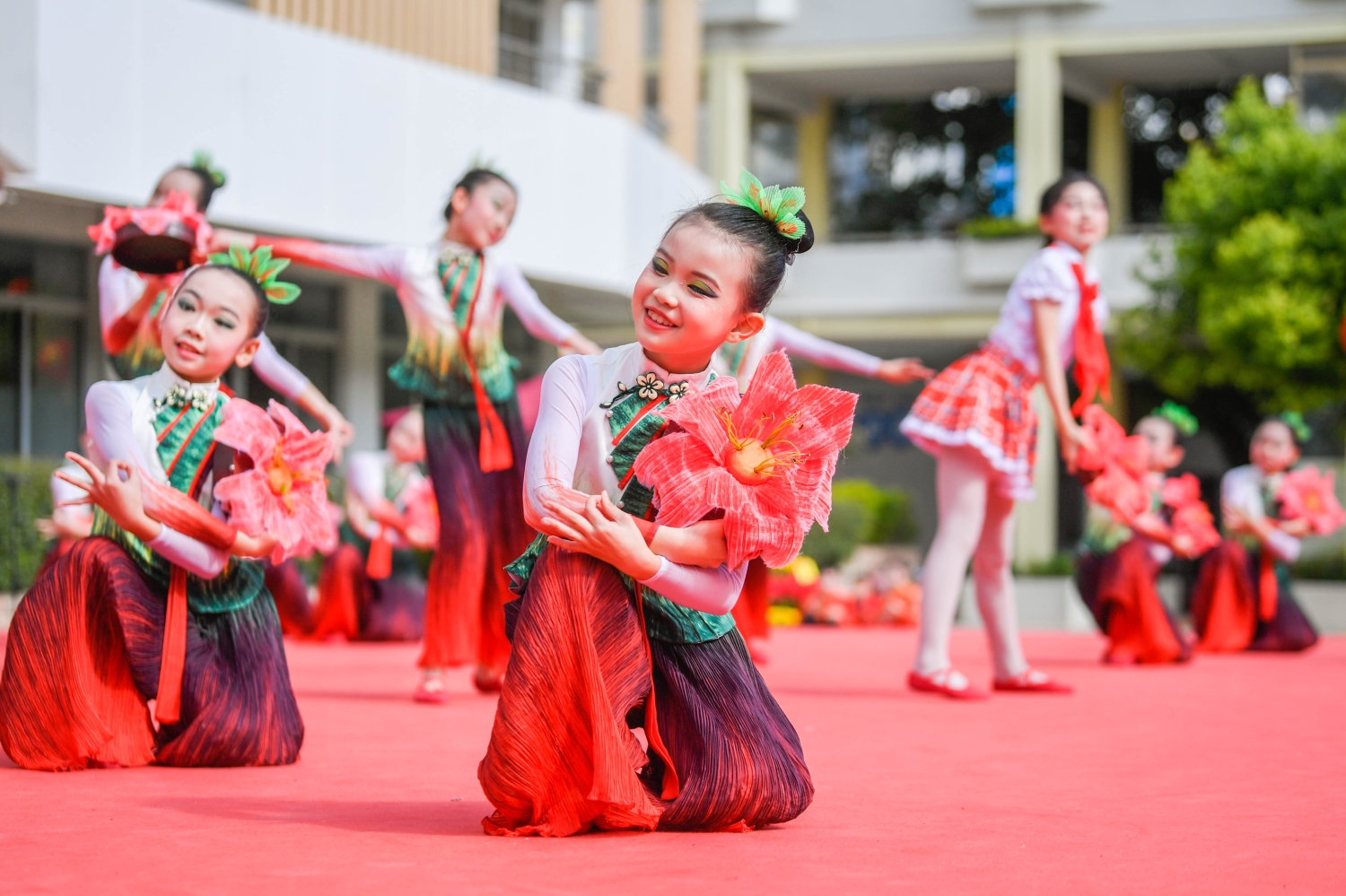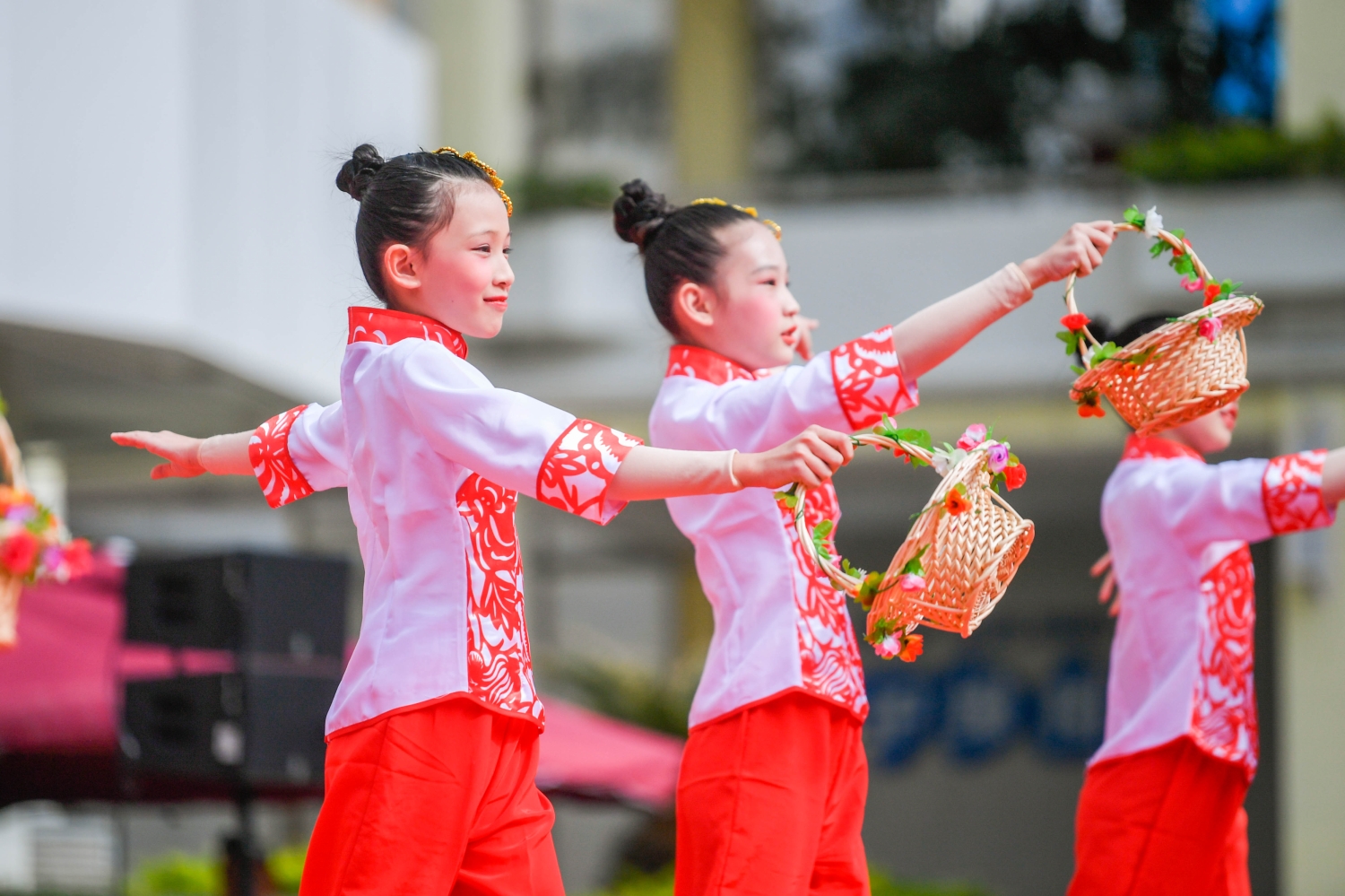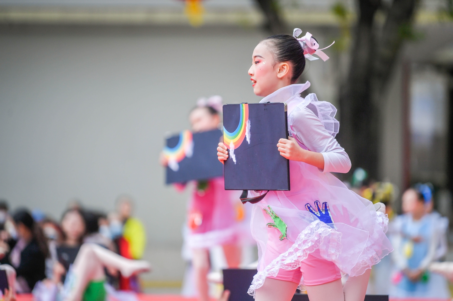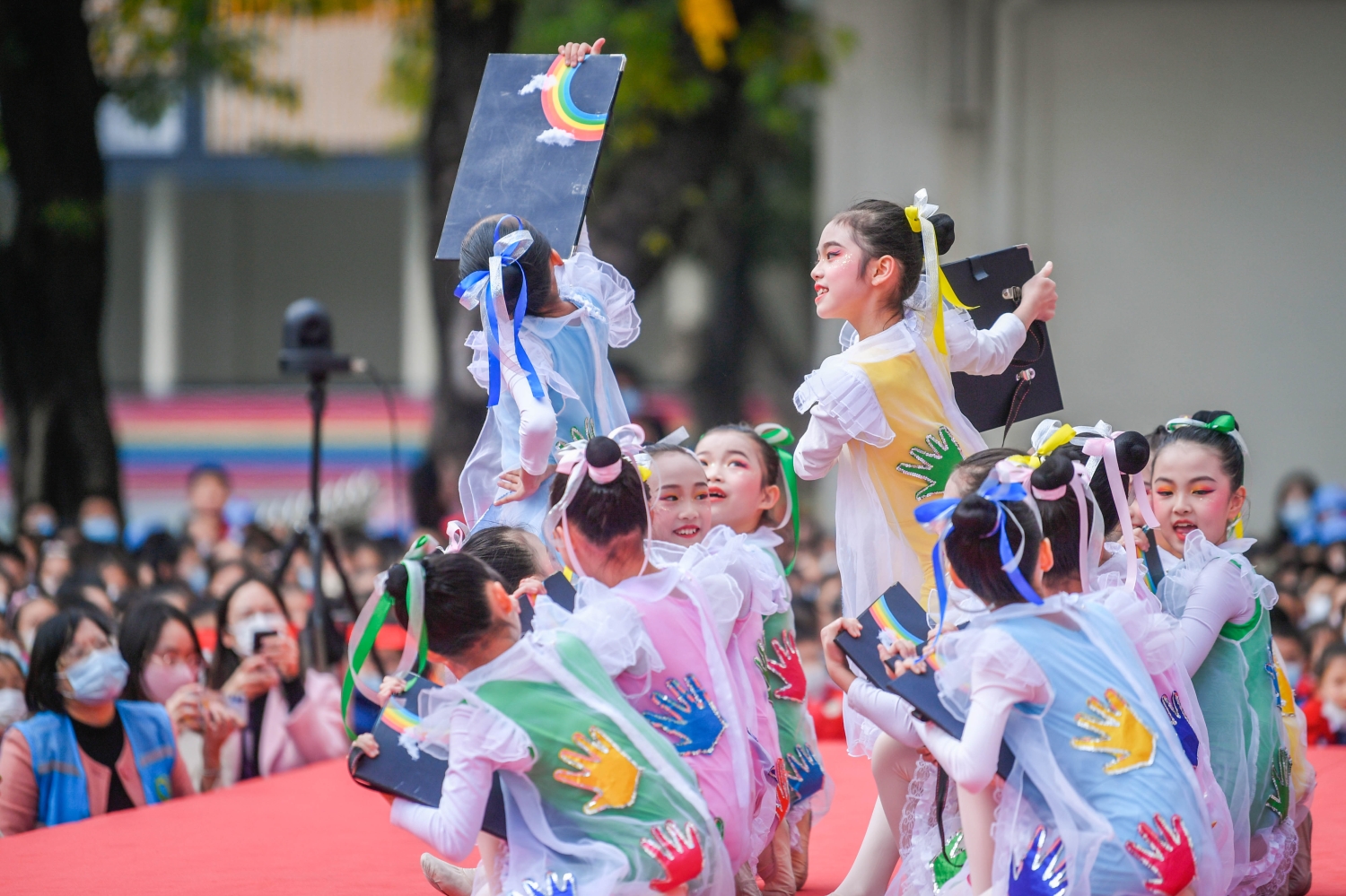校舞蹈队表演了《我心中的画》,演绎了一群爱写生的小朋友,用五彩画笔,绘出一幅辽阔的中国地图,群舞《棉棉情深》则跳出了木棉花开的美丽与壮观。