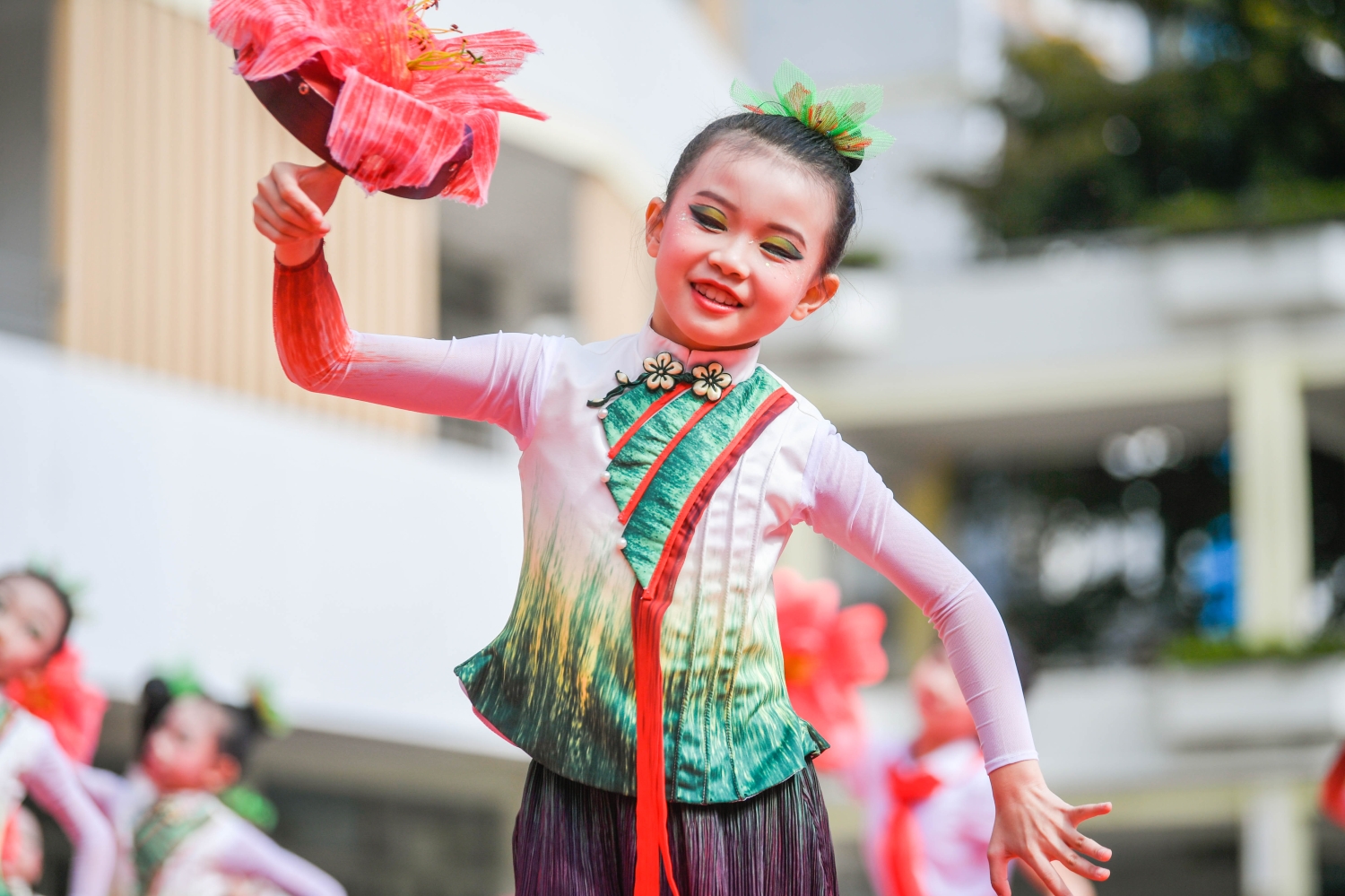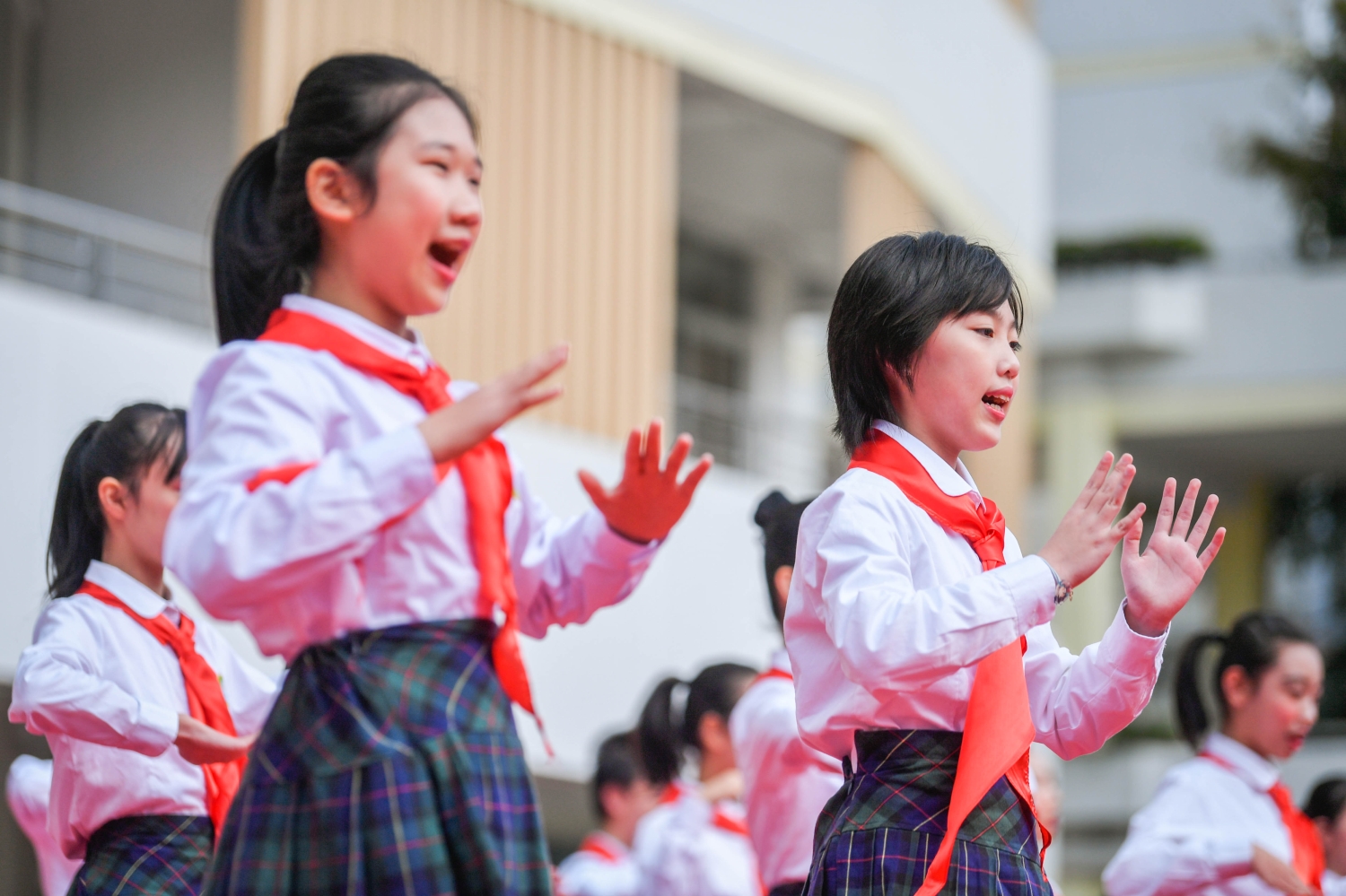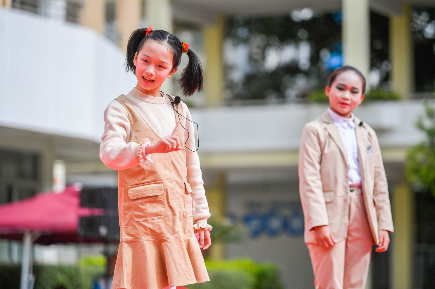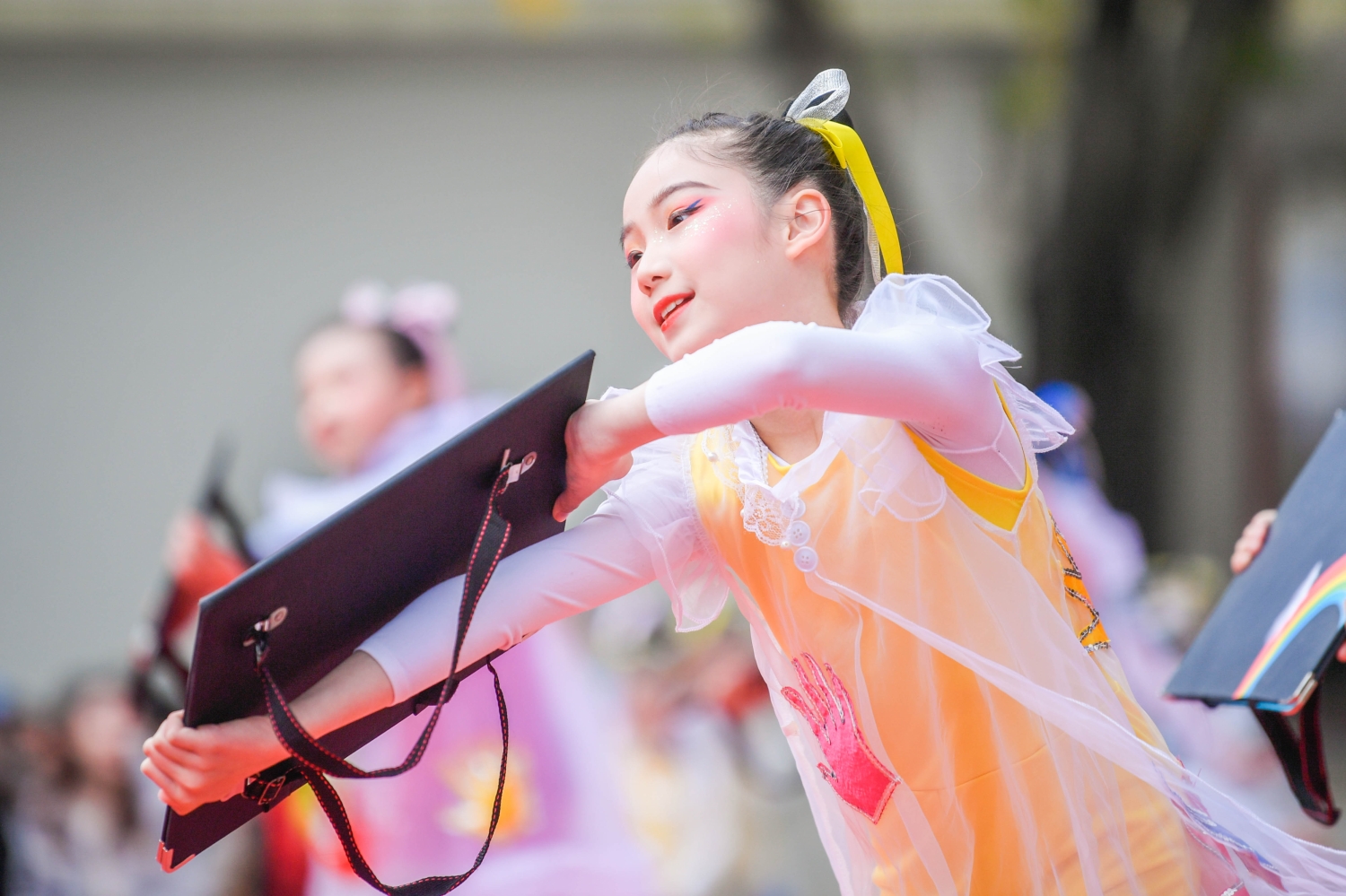 校舞蹈队表演了《我心中的画》,演绎了一群爱写生的小朋友,用五彩画笔,绘出一幅辽阔的中国地图,群舞《棉棉情深》则跳出了木棉花开的美丽与壮观。